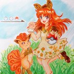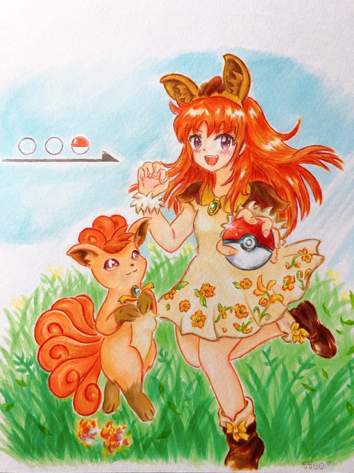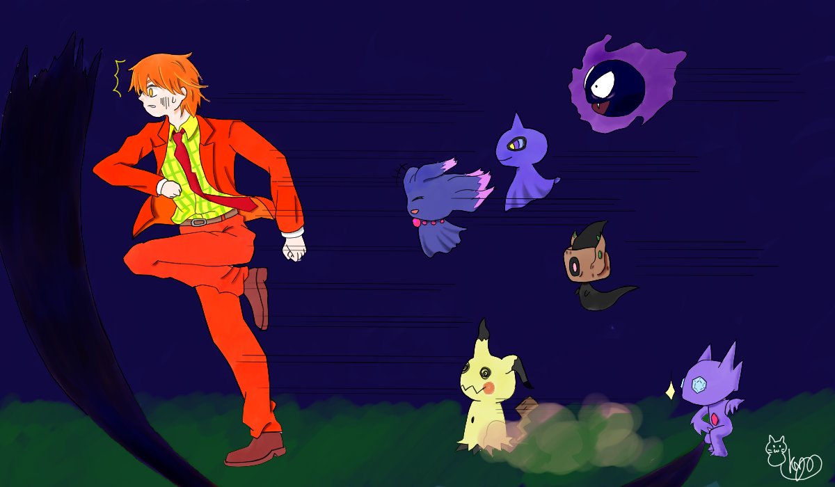 リクエストで、みなみ更紗さん@rogu2416のオリトレの「ローレン」を描きました✨✨ 臆病な所があるとの事なので、ゴーストポケモン達から必死に逃走している所を描いたよ(^_-)-☆ #絵 #イラスト #よその子 #オリトレ #絵柄が好みって人にフォローされたい #イラスト好きな人と繋がりたい #リクエスト