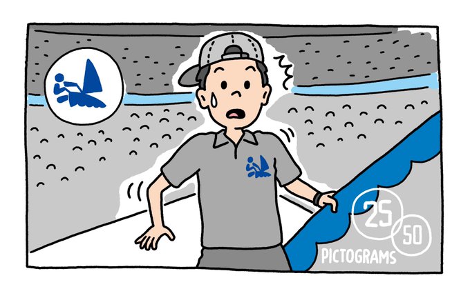 そろそろ1年たつので描いてみた。自画像のわりに可愛く描きすぎだろと言わんでください。イラストのタッチがこうなんで。 #イラスト #シンプルイラスト #線画イラスト #セーリングピクトグラム #オリンピックピクトグラム #ピクトグラム #オリンピック開会式ピクトグラム