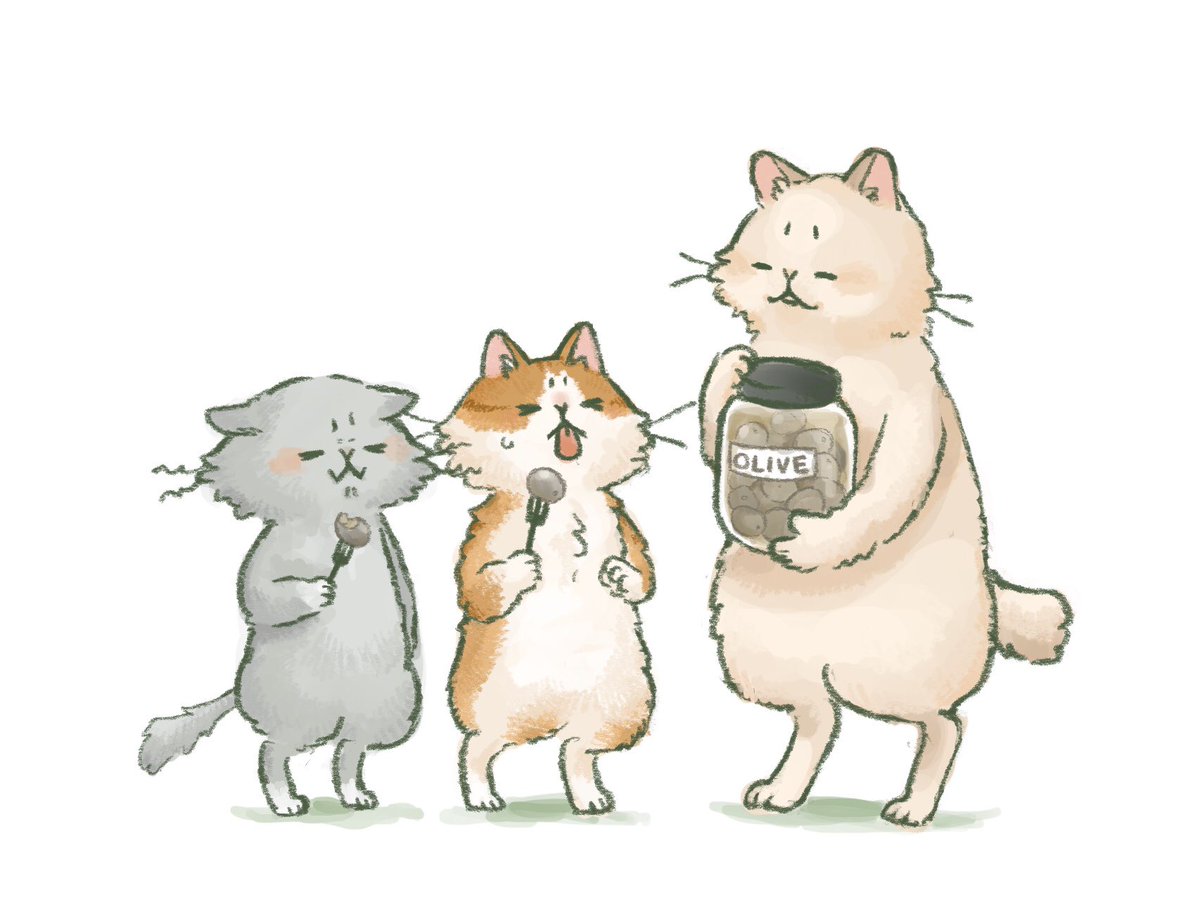 おちびにはちょっと早い味だった… #イラスト好きさんと繋がりたい #絵描きさんと繋がりたい #猫好きさんと繋がりたい #イラスト #illustration #ゆるいイラスト #オリーブの日