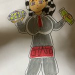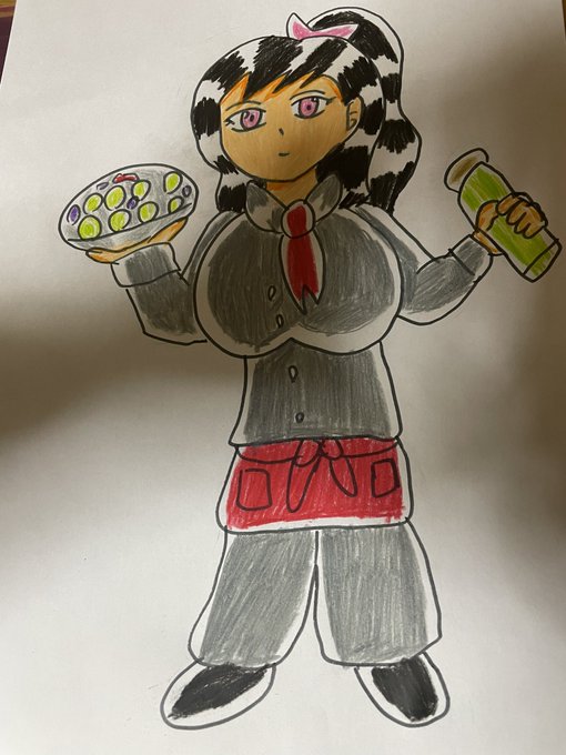 #一日一絵 #毎日絵一枚上げる #イラスト #色鉛筆画 #オリキャラ #イラスト好きな人と繋がりたい #絵描きさんと繋がりたい #オリーブの日 阿列布緒莉葉 オリーブが好きな女性料理人 得意料理はオリーブの塩漬けなど オリーブは健康にいい事を昔から知ってる