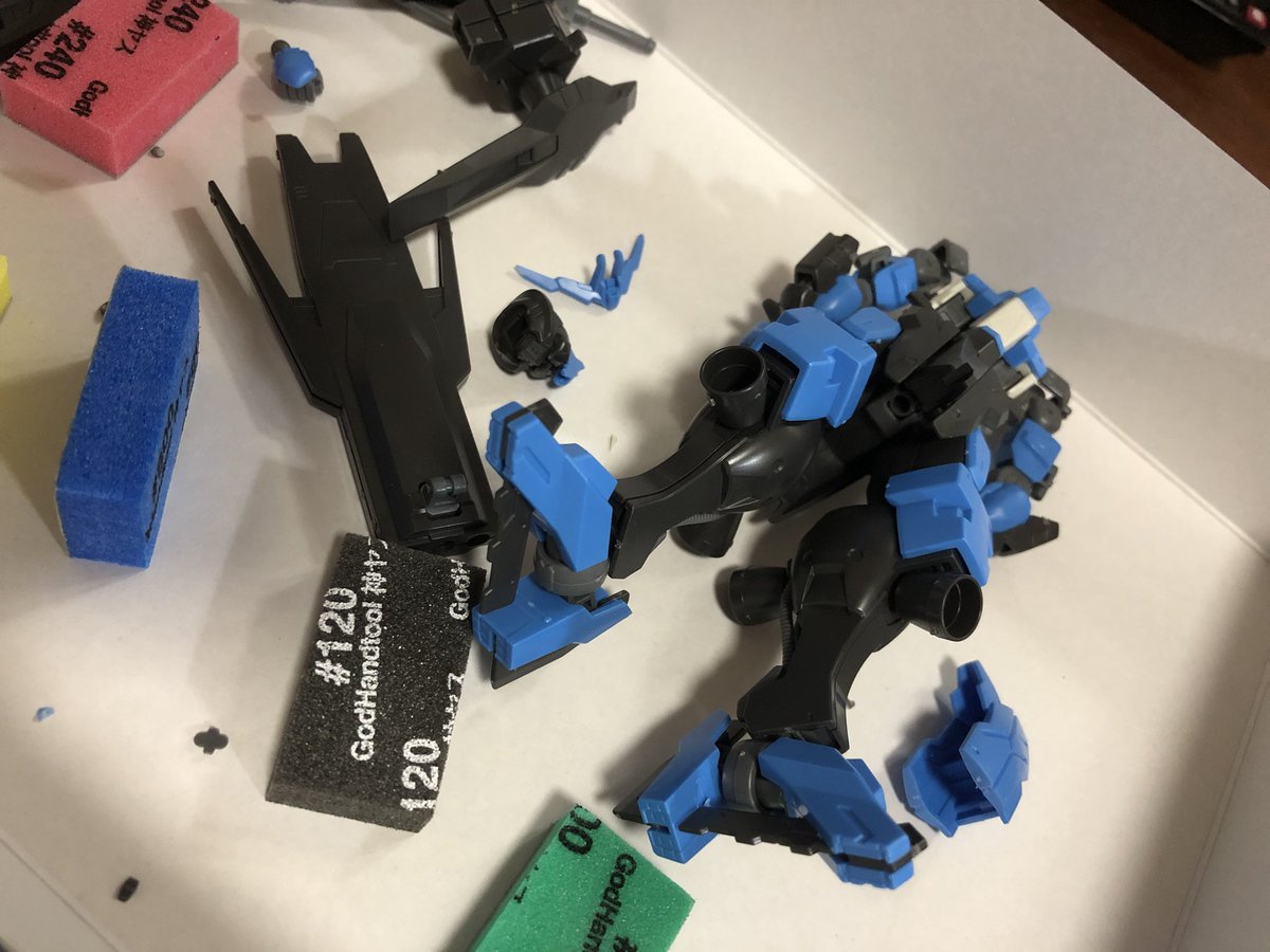 今日はめちゃくちゃちょっとしか作業進められんかった( ◜ω◝ ) 武器の合わせ目消すための接着と、 肩とアンテナのゲート処理だけ… 明日と明後日は作業時間もっと取れるようにがんばるぞ! #ガンプラの画像貼るとRTされると聞いて #オルフェンズ