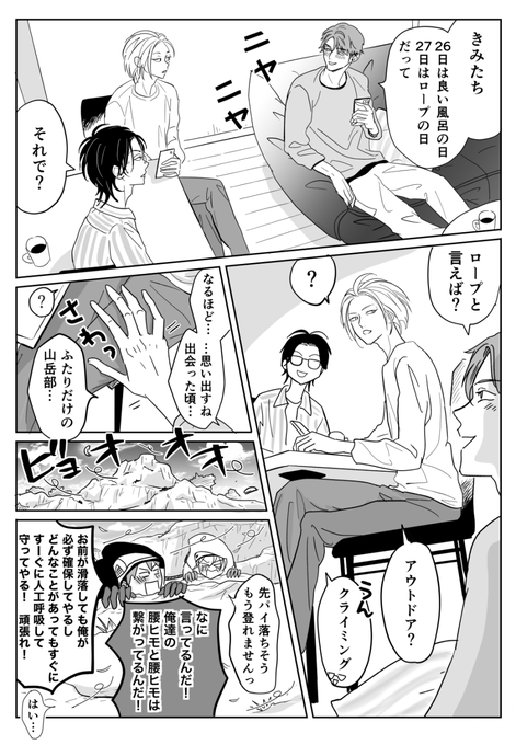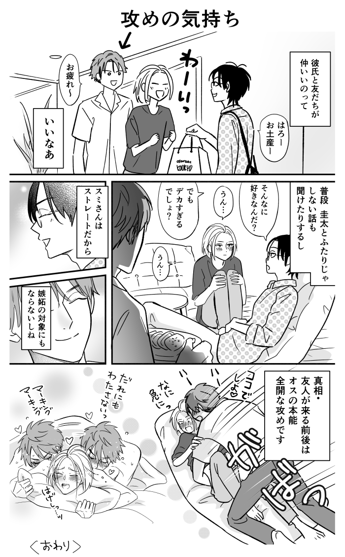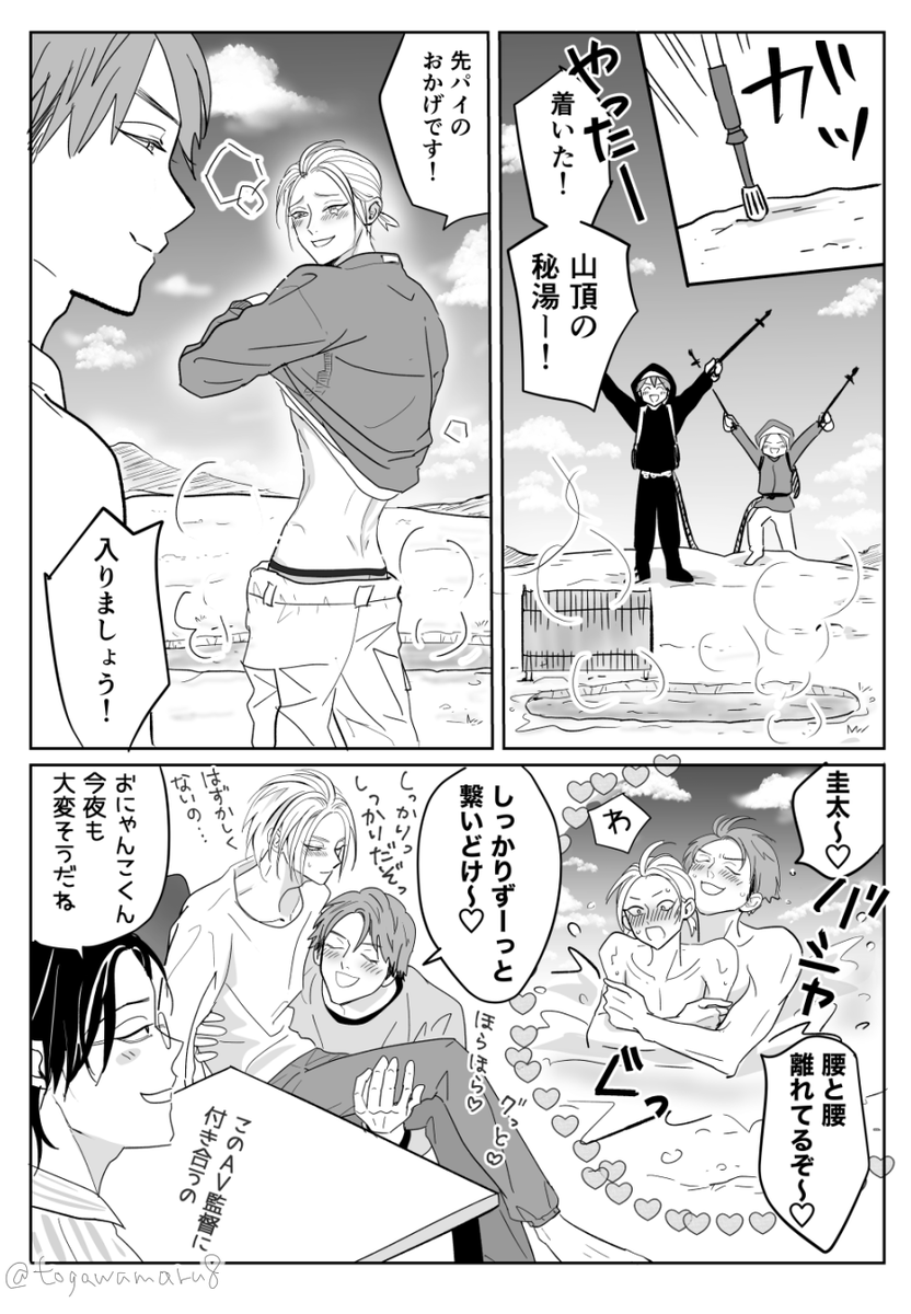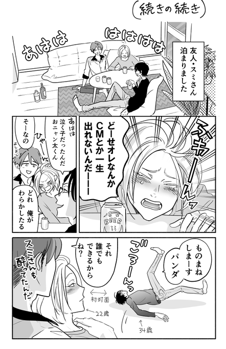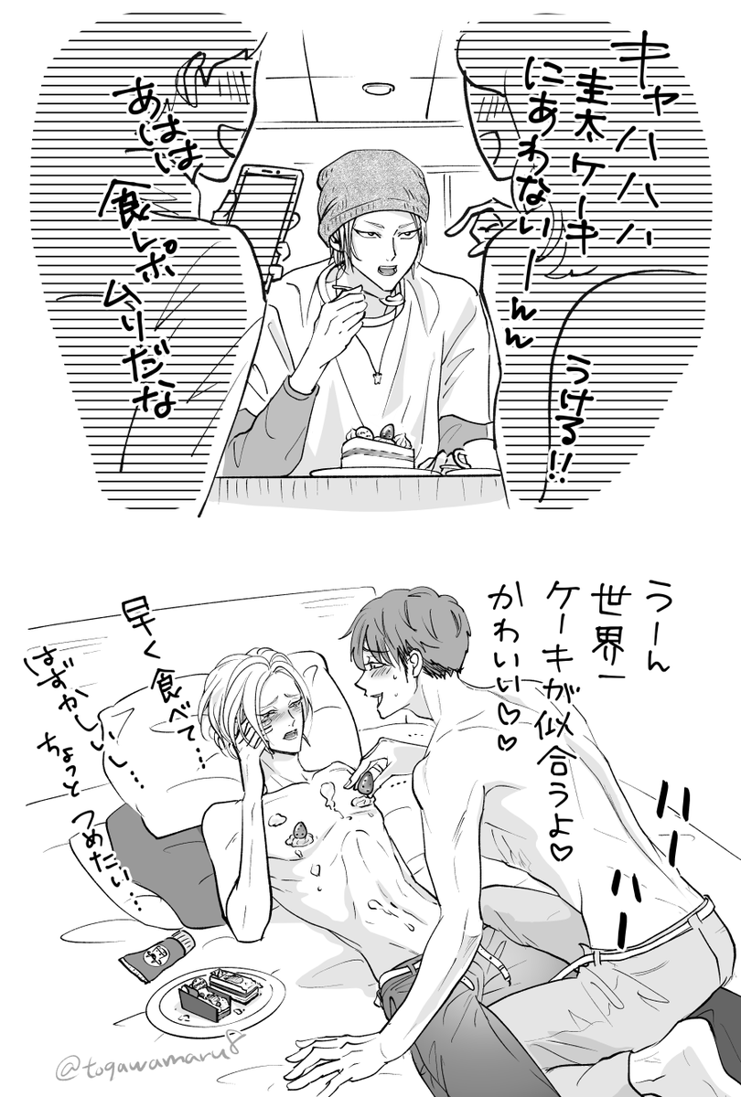 続きの続き描いちゃいました。大の男たちの平和な夜。今度こそこの回終わりです! (1、2回↓ mobile.twitter.com/togawamaru8/st… ) #創作BL #オレが脱ぐなんて聞いてない