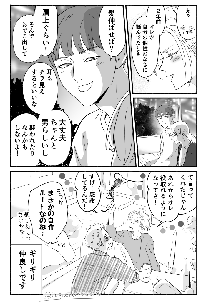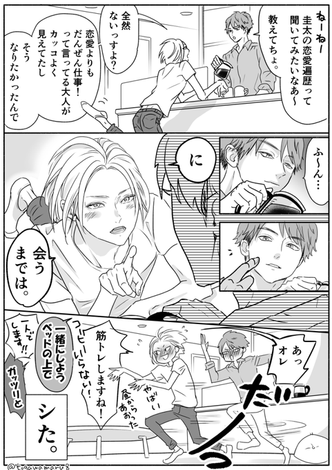 小ネタ排出漫画ですが黒崎さんと圭太② (①→twitter.com/togawamaru8/st…) 回収的な続き描くかもです! #創作BL #オレが脱ぐなんて聞いてない #漫画が読めるハッシュタグ