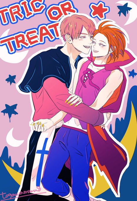 ハロウィン落書き、ご協力いただいたアンケ通りくっつく2人にしたんだけどくっつけ足りなかったかも! また描きます。楽しいハロウィン過ごしてください~! #ハロウィンイラスト #創作BL #オレが脱ぐなんて聞いてない