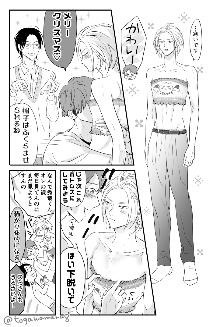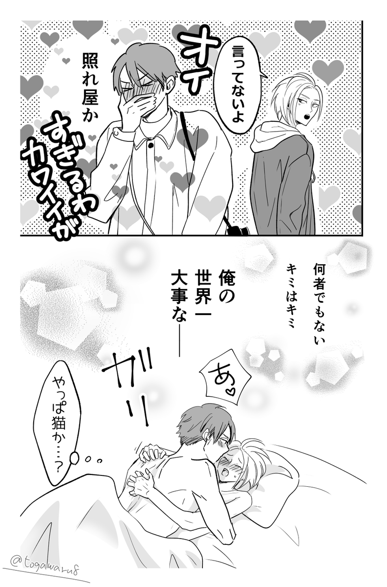 描きかけだった猫漫画にクリスマスを合体させました。猫漫画とは、私が友人のかわいい猫と触れ合えた際、記念に描く猫ネタ漫画のことです。 楽しいクリスマスを!! #オレが脱ぐなんて聞いてない #創作BL #漫画の読めるハッシュタグ