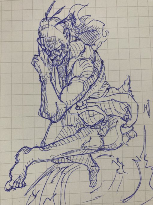 「絵描きさんと繋がたい」という謎のタグで投稿するへっぽこぶり。厚かましく再投稿を試みるのが昭和生まれの心意気。 #絵描きさんと繋がりたい #格ゲーキャラ描こうぜ #ストリートファイター5 #オロ #ボールペン