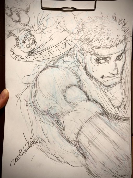 今日は一番早かった井上くんのオロを採用(?)50分くらいかなー いやーオロは難しいなぁ(ハナホジー 明日からみんなにもらったお題を消化していこう #StreetFighter #オロ #リュウ #格ゲーキャラ描こうぜ