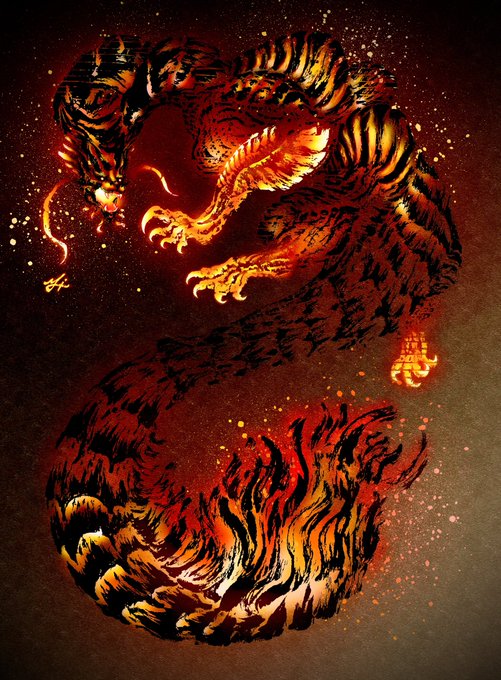 筆ペンでオロミドロ亜種描きました🔥‼︎ Magma Almudron drawn with a brush pen 🌋 #MonsterHunter #モンハンライズ #MHサンブレイク #オロミドロ亜種 #art #drawing #illustration