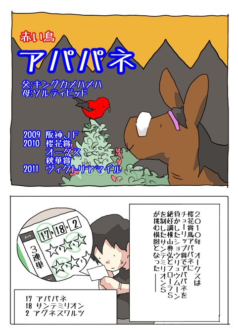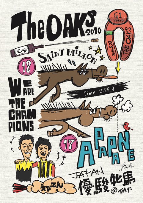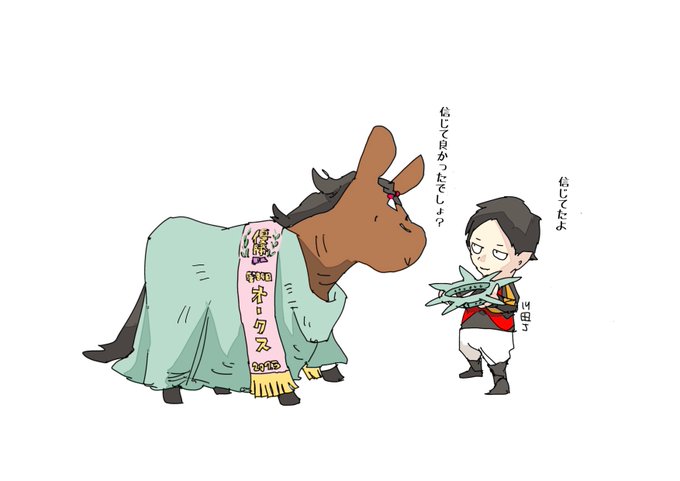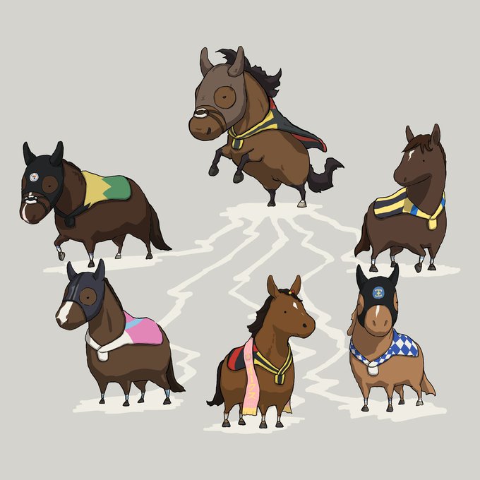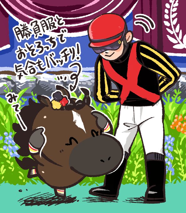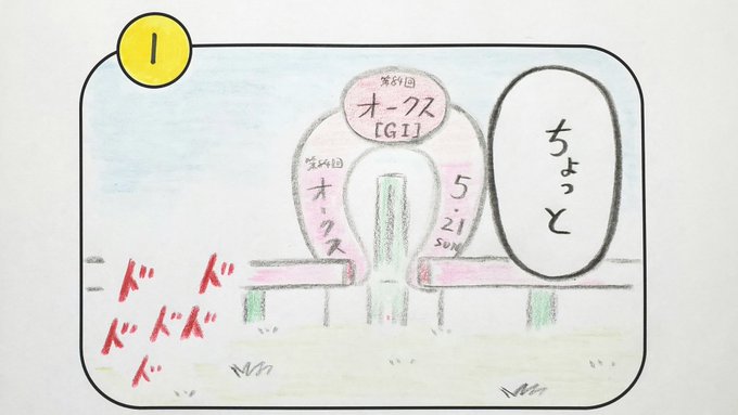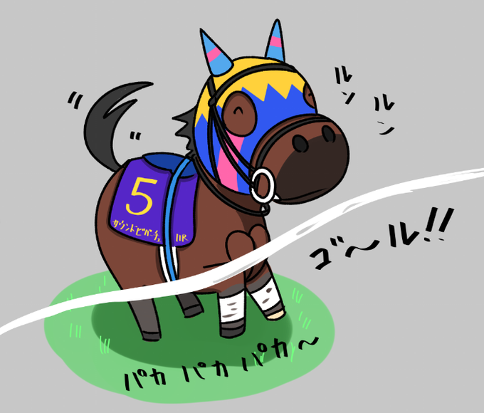 仕事の合間に落書き 録っててもらったみんなのkeiba見たあとざっくり描いた。 ラブパイローの後ろっぱねが当たっちゃったとのことで 大変だったねぇ #オークス #おとしごろなたたかい
