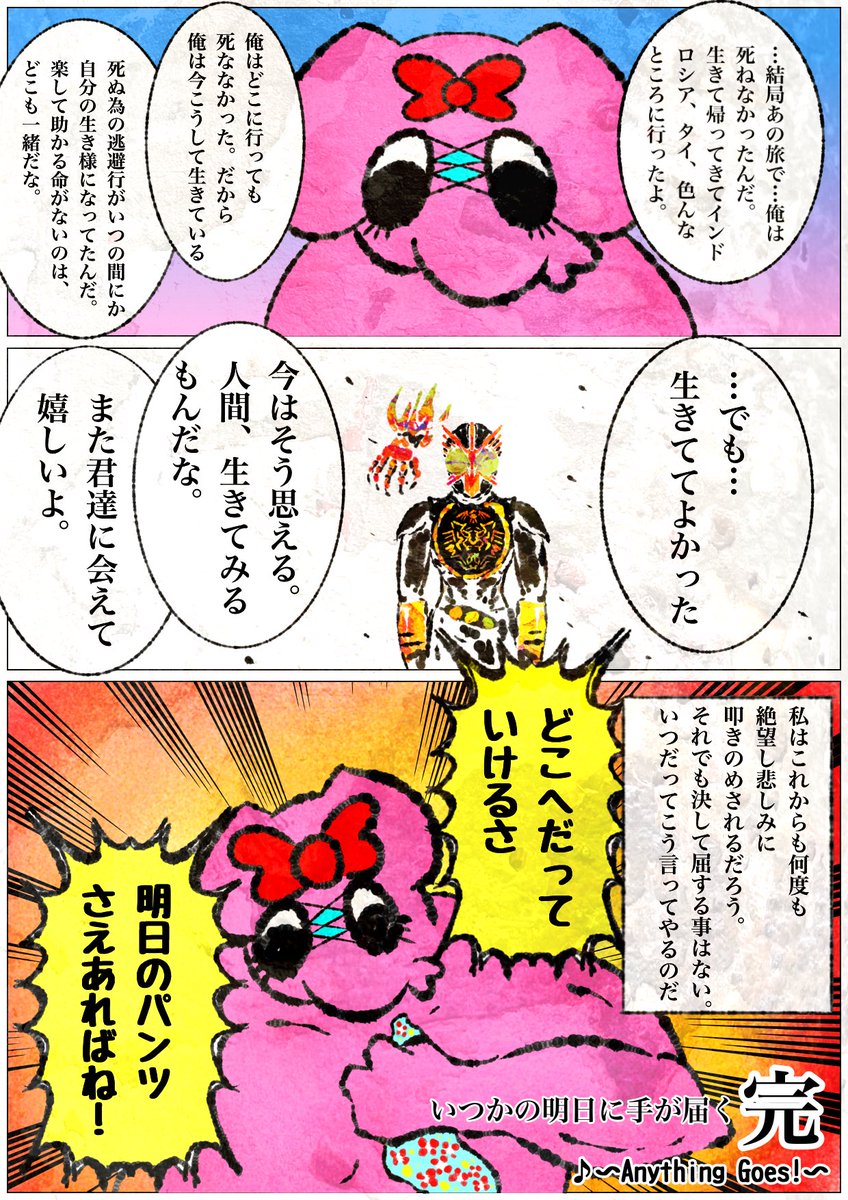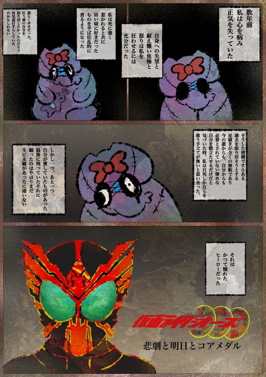 仮面ライダーオーズに命を救われた話。 オーズからエスニックファッションに、ヒッピーと海外アニメに、と一連の連なった出会いが私を鬱から掬い上げてくれました。 最新作、復活のコアメダルは明日3月12日より公開!みんなも映司くんとアンクに会いに行こう! #オーズ10th #仮面ライダーオーズ