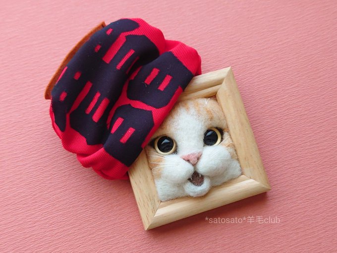 とりあえず完成~! #ご当地猫フレーム 東京ver.🐱💕 デザフェス当日看板猫として皆様をお迎えいたします(非売品) ってこれ何被ってるのか分かるのだろうか?🤣 #羊毛フェルト #猫フレーム #雷門の提灯をかぶる猫 #オーダー作品 #猫好きさんと繋がりたい #デザフェス J-330(11/20のみ) #デザフェス56