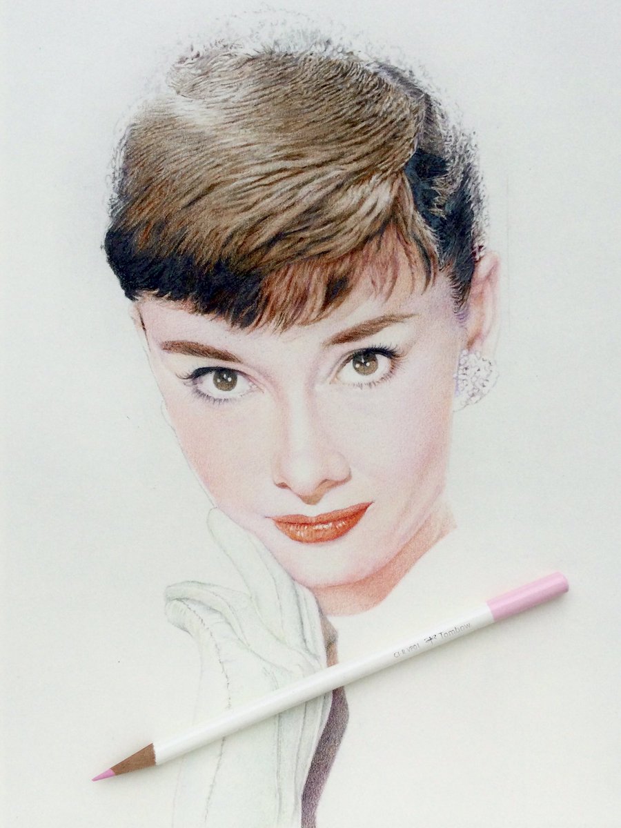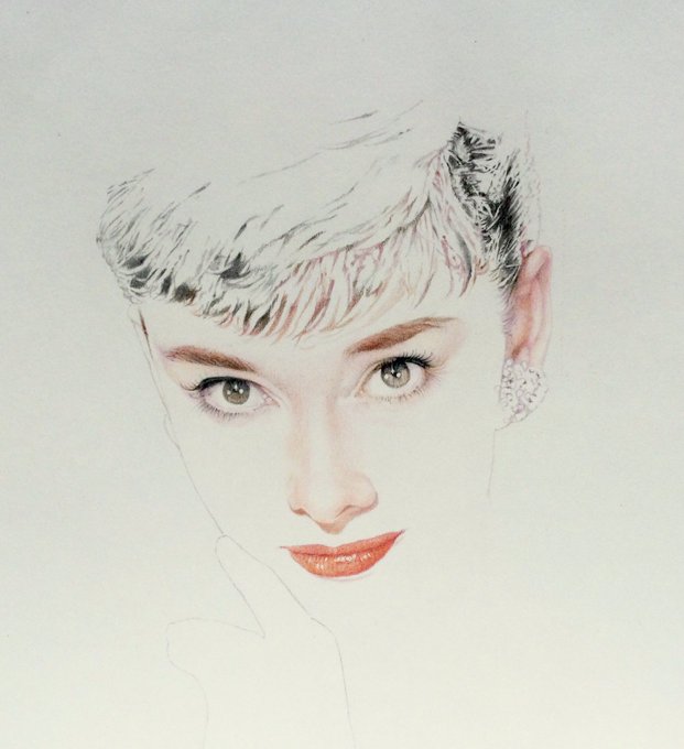 オードリーヘプバーン色鉛筆画。 描き出しはイマイチでしたが、 ここまで描き進めて一応恰好がとれて来たので、 最後まで描き続ける事にしました。 #オードリーヘプバーン #オードリーヘプバーンイラスト #肖像画 #色鉛筆画