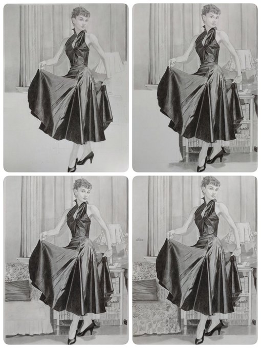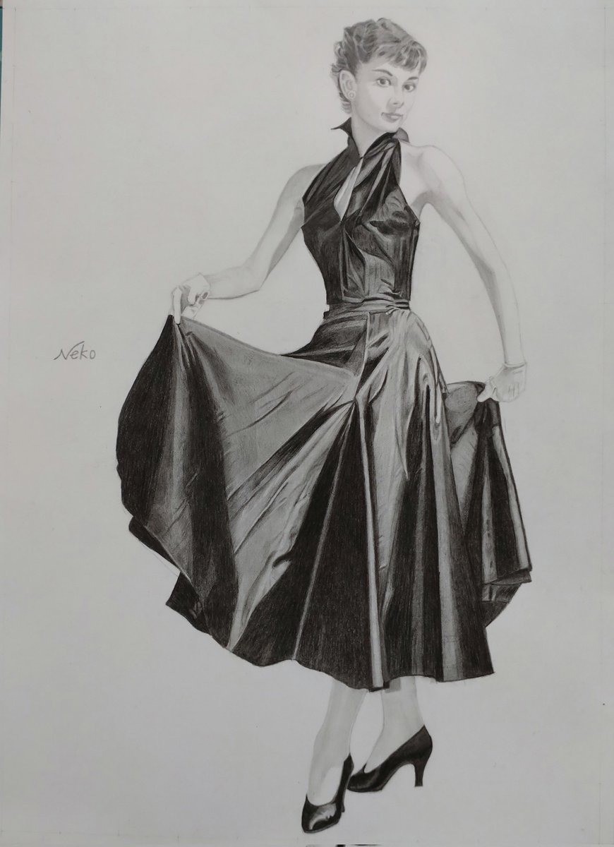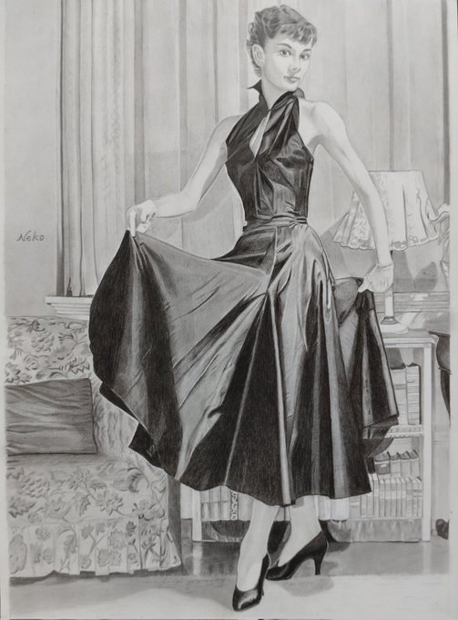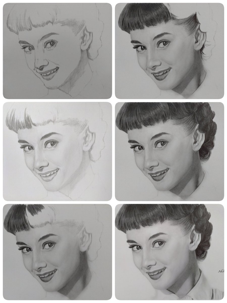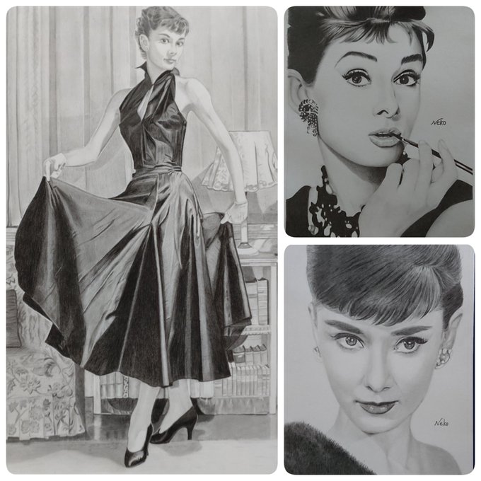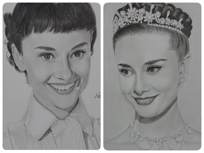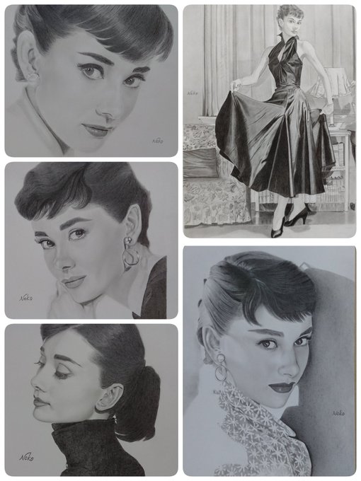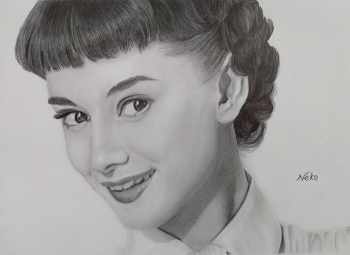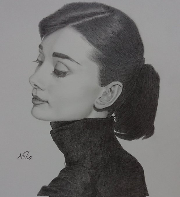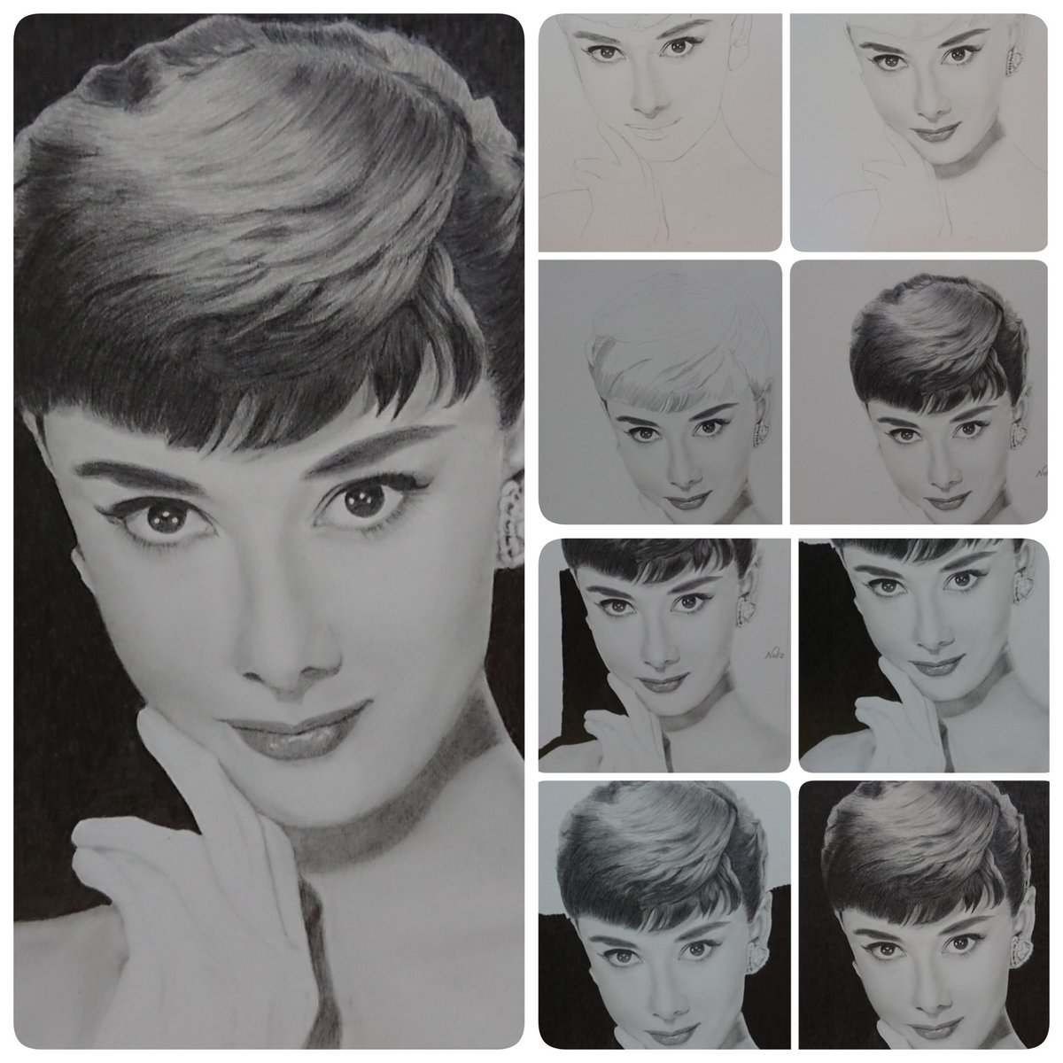 オードリー・ヘプバーン描きました。 前回の似顔絵が酷い作品だった ので、今回は丁寧に描きました。 左が似顔絵で右が参考画像と制作過程です。 #鉛筆画 #似顔絵 #オードリー・ヘップバーン
