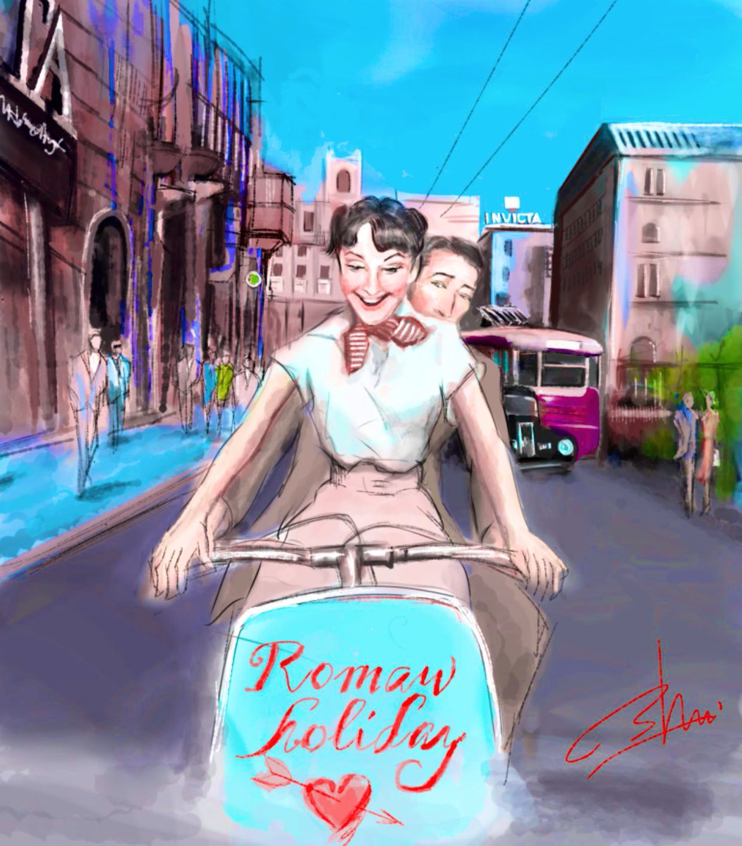 4月19日は #オードリー・ヘプバーン の出世作、《#ローマの休日 封切り日》。 (*゚ω゚)ノ 私にとってベストofベスト映画のひとつであります♪もちろん城達也さん&池田昌子さんの吹替以外はありえません♪ ちなみに5月4日が彼女の🎉生誕祭🎂 #1日一点とにかく描く #今日は何の日