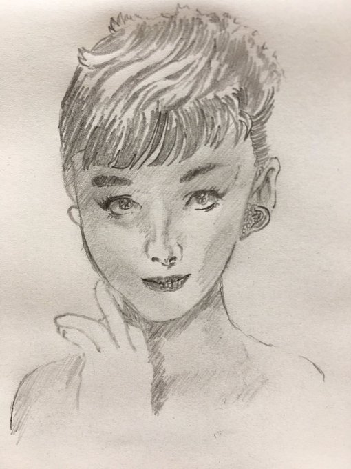 オードリーヘプバーンの絵🎨 一見何も変わらないのに、長時間鏡を見てメイクを手直しする女子の気持ちを理解できた絵でした💄💄💄 #絵描きさんと繋がりたい #イラスト好きな人と繋がりたい #イラスト #CG #色鉛筆画 #鉛筆画 #Procreate #Art #オードリー・ヘプバーン