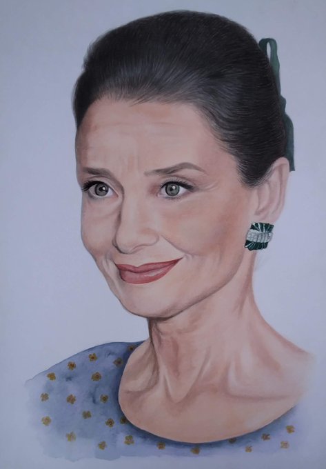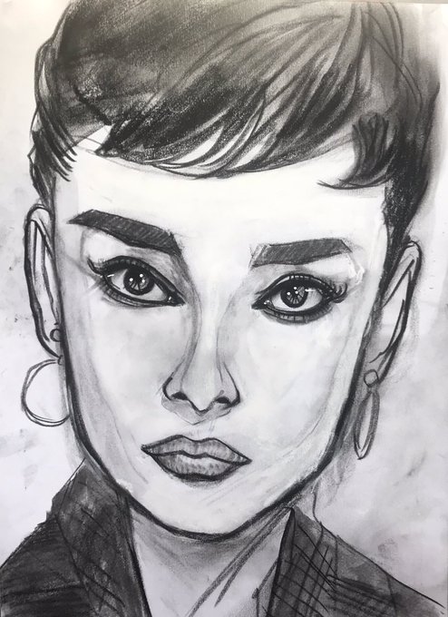 おはようございます(*^^*) 『晩年のオードリー・ヘプバーン』 制作過程⑥ 洋服を描きましたが ちょっと地味でしたので修正しようと思います。 ■バックを描いて明日完成予定ですので皆様、お見逃しなく…。 日曜日、今日も宜しくお願い致します🙇♂️ #オードリー・ヘプバーン