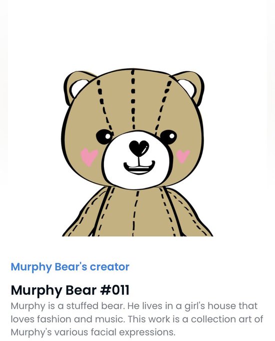 New post by Opensea🧸 Murphy Bear #011 Murphy is a stuffed bear. He lives in a girl's house that loves fashion and music. #characterdesign #digitalillustration #bear #opensea #NFT #nftart #キャラクターデザイン #デジタルイラスト #オープンシー