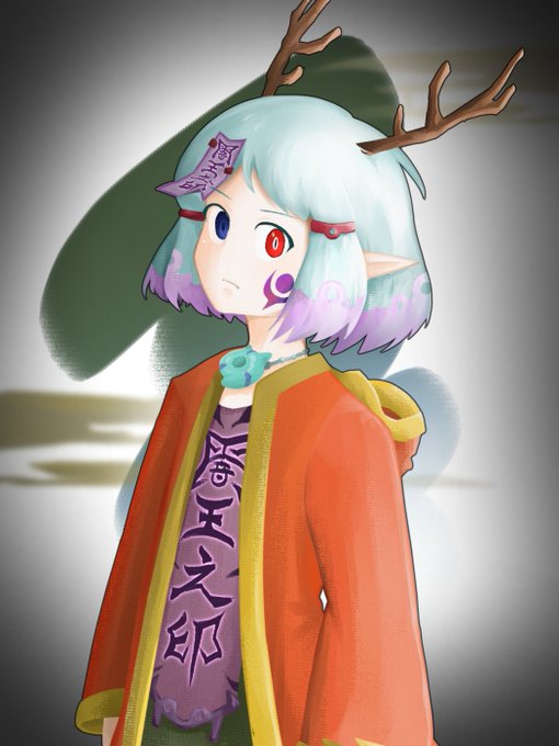以前のデザイン(下図)から若干変わってます もともと縄文モチーフなので服などに縄っぽい模様を増やすなどしました #オ伽アパート #うちの子 #絵描きさんと繋がりたい #創作 #イラスト #鬼 twitter.com/nekosaku_otogi…