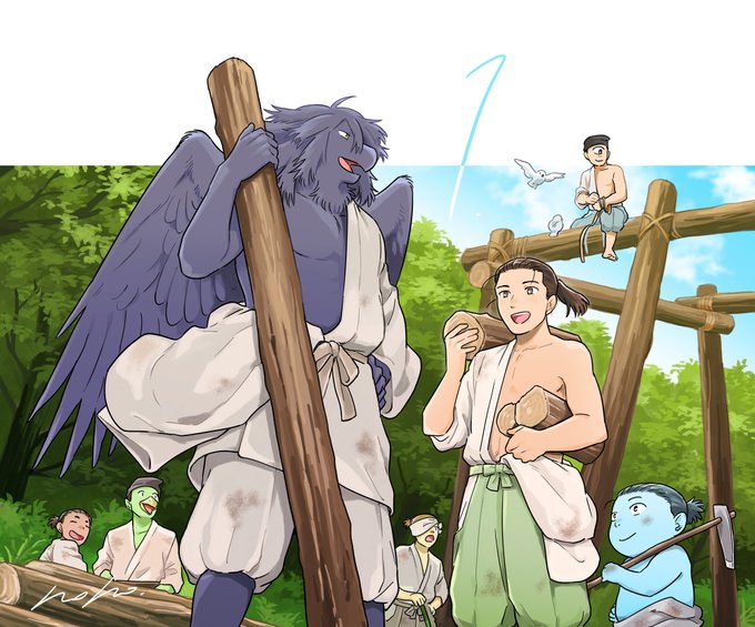 今年最後のイラスト✨繋げた全体絵です♪皆さん、今年はお世話になりました❗️それではよいお年を♪😊 #イラスト #神国の住人 #カウントダウン #オリキャライラスト #オリジナル #うちの子 #クロスオーバー #イラスト好きさんとつながりたい #絵描きさんと繋がりたい