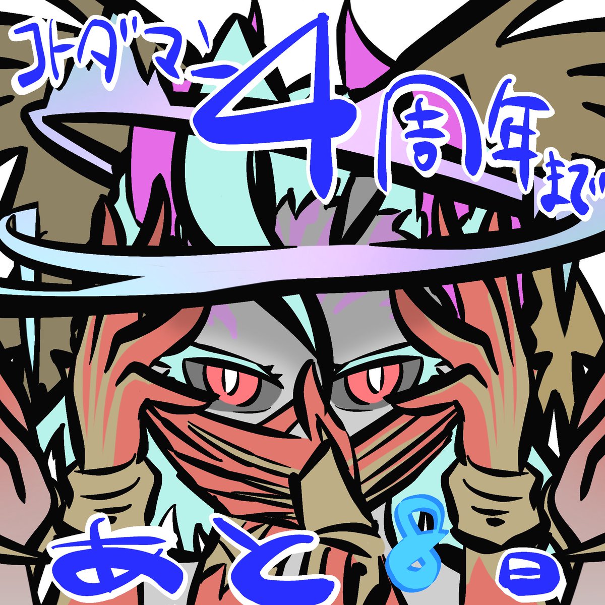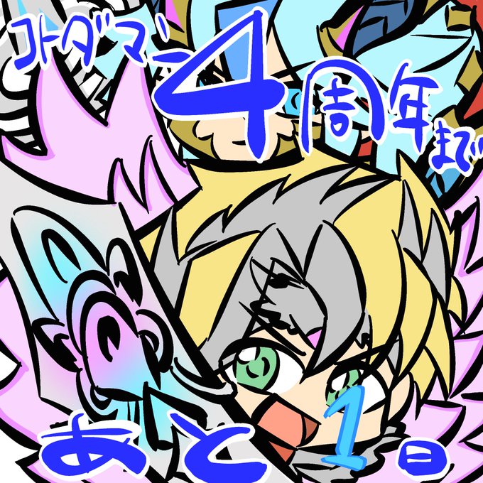 #コトダマン #カウントダウンイラスト コトダマン4周年おめでとうございます!!🎊🥰🎉 1か月間描き続けました!! ラストはキュウセイくん!! 新キャラたくさん楽しんでます!! 運営さんいつもありがとうございます!!