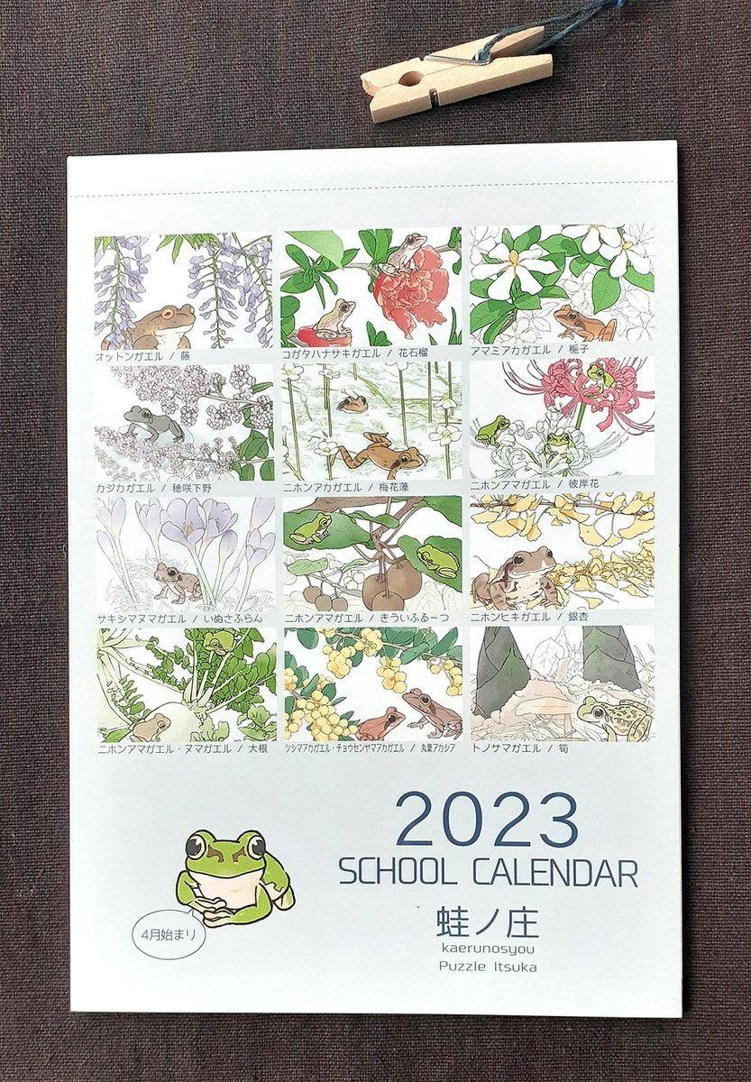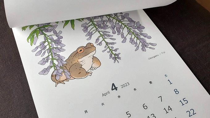 「2023年カエルカレンダー 4月はじまり」 できてきました~ただいま製本中です~🌱🌸 こちらのイベントに持っていきます! ▶2/19 #コミティア143「ぱずる座」け43b ▶3/4-5 #カエルクリエイターズフェスタ 淡水魚水族館「アクア・トト ぎふ」 よろしくお願いいたします✨
