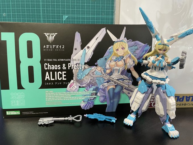 本日の積みプラ崩しはアリス。 こちらも箱絵で買ったキットです。 兎とニコイチしたり面白いプラモでした。 耳が大きくあしもゴツくていい感じです。 あとやっぱりかわいい。 #美プラ #プラモ好きと繋がりたい #カオスアンドプリティアリス #メガミデバイス #模活 #積みプラ