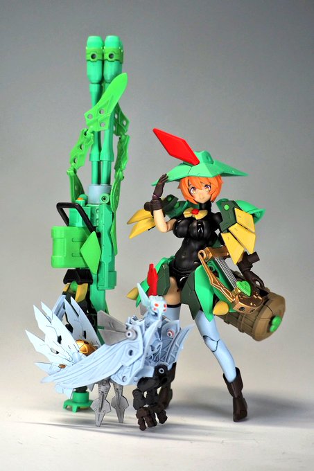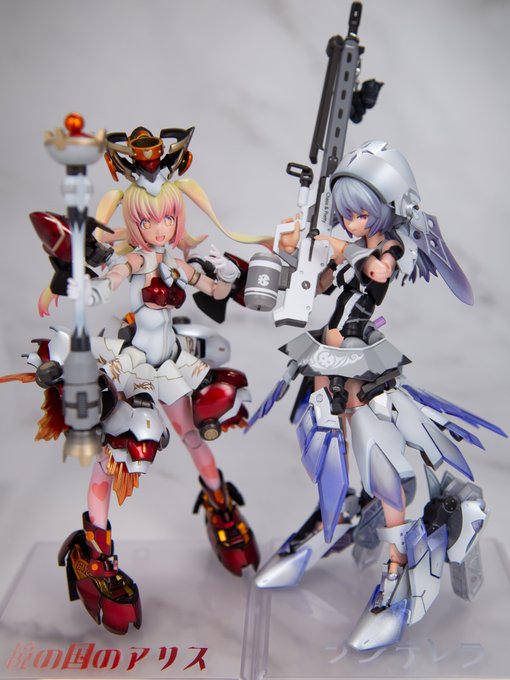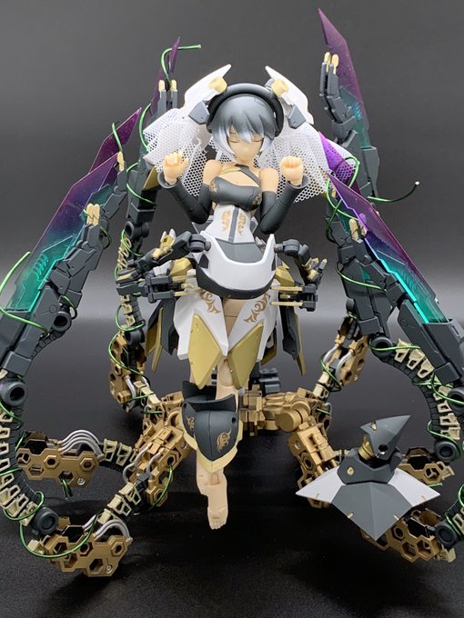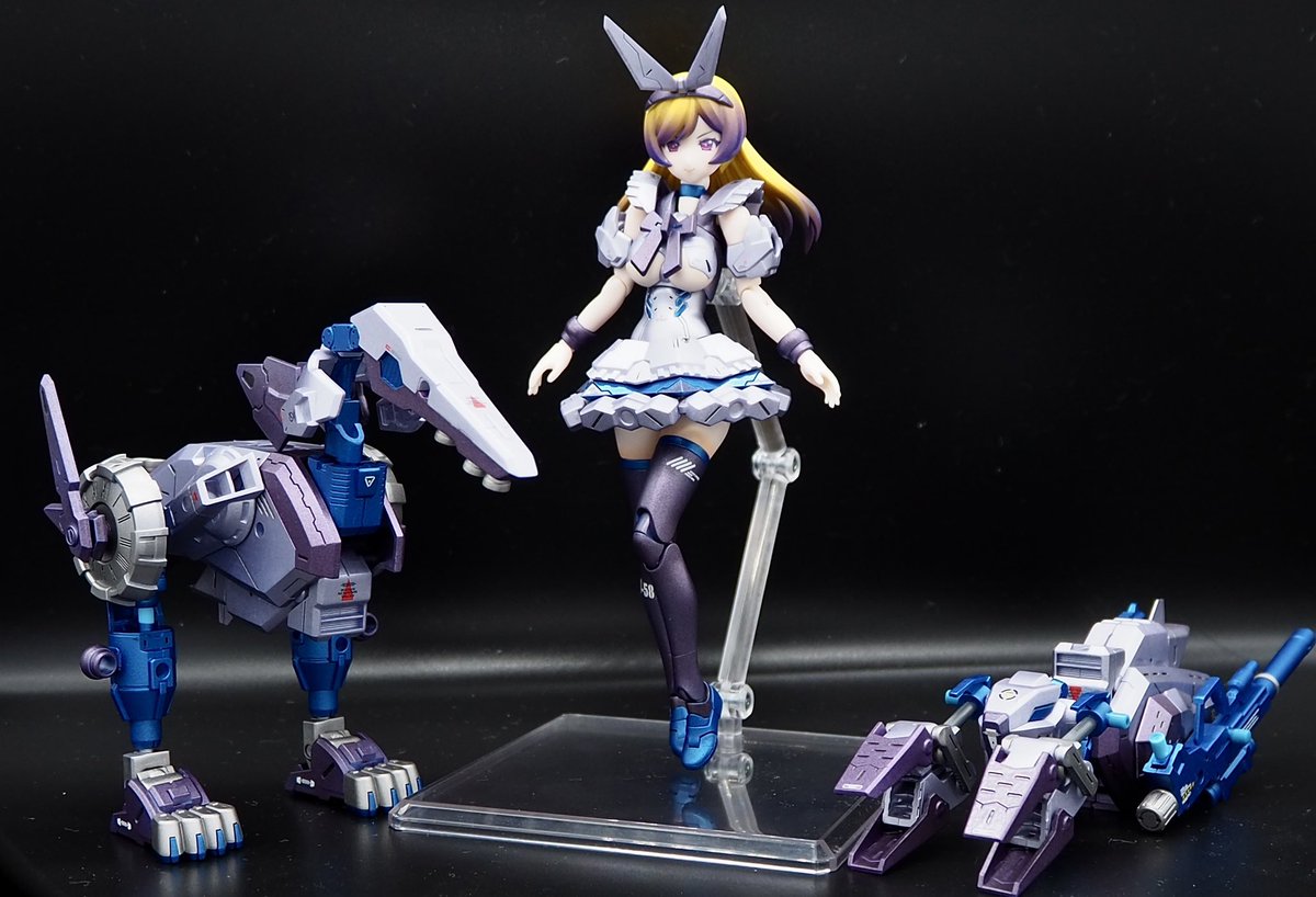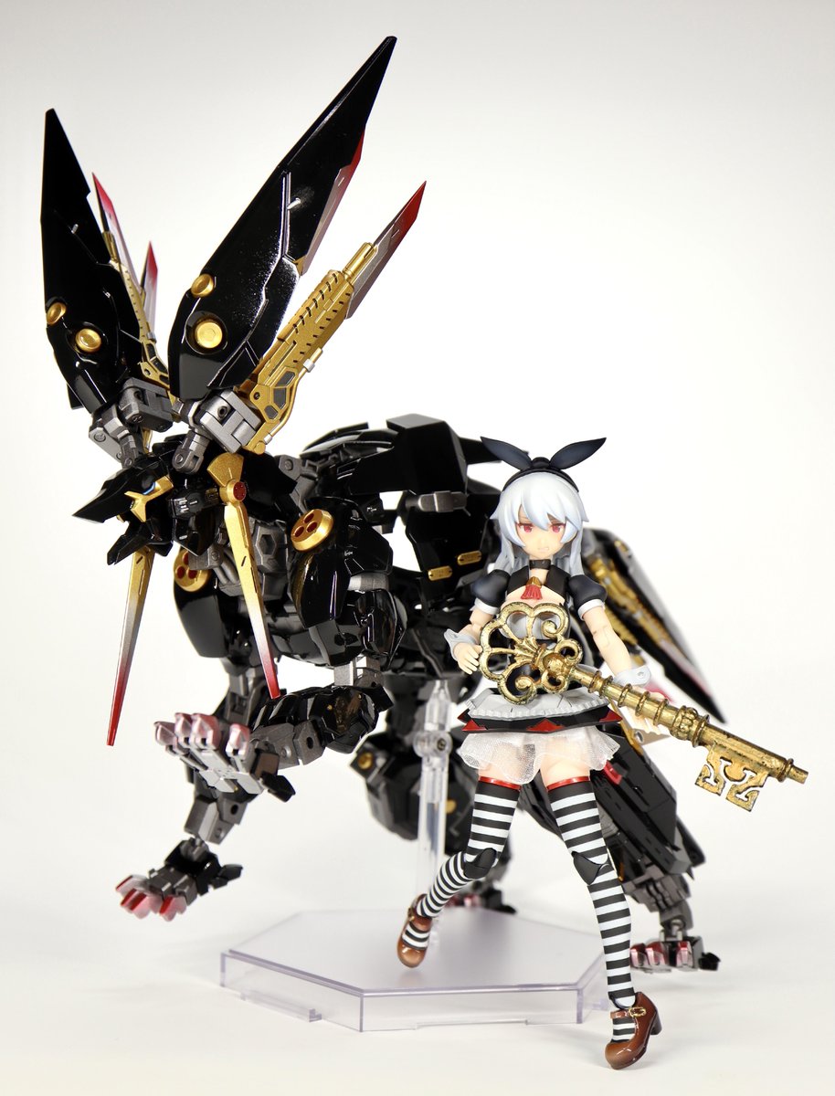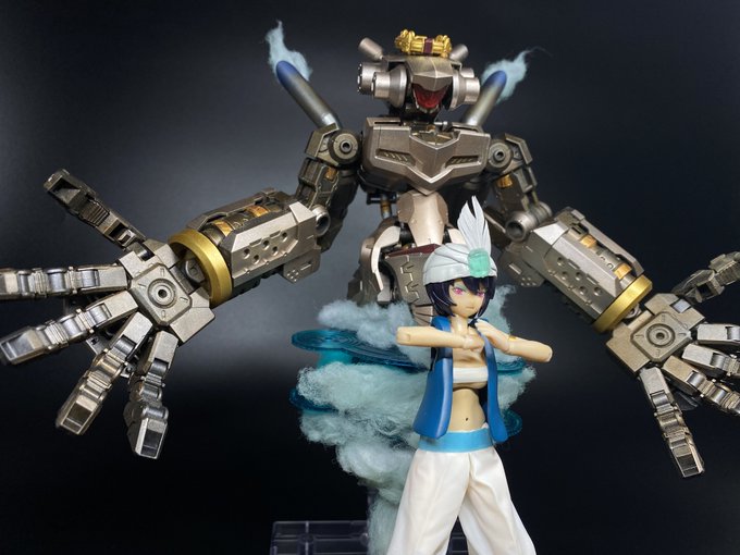 だいぶ遅れましたがメガミデバイス アリスの完成です。 余剰パーツ等を加えて肌以外塗装済みです。一部パーツが破損してしまったので支援メカをドードー型と謎の生物型に分けました。 #メガミデバイス #カオプリグリム発売前制作祭