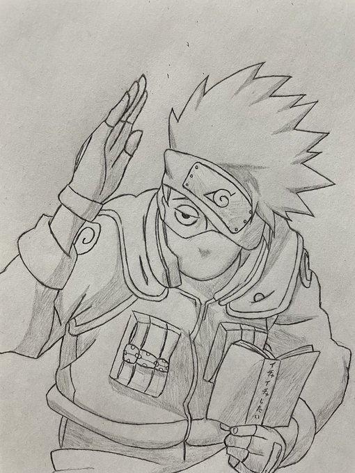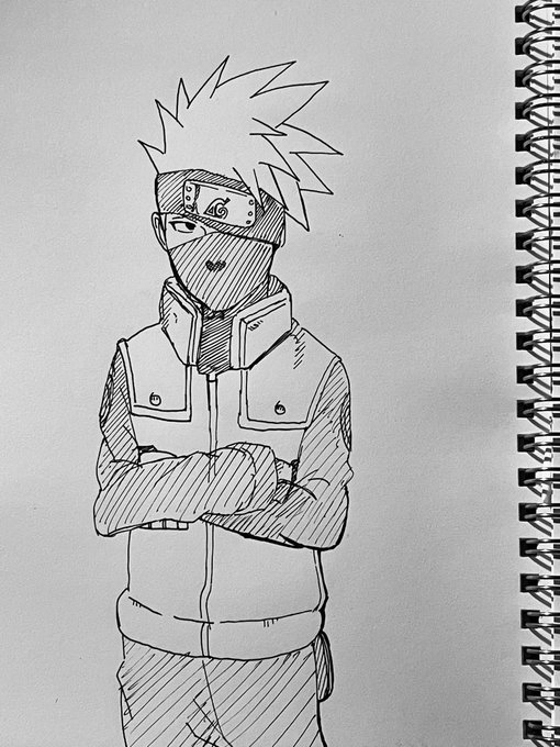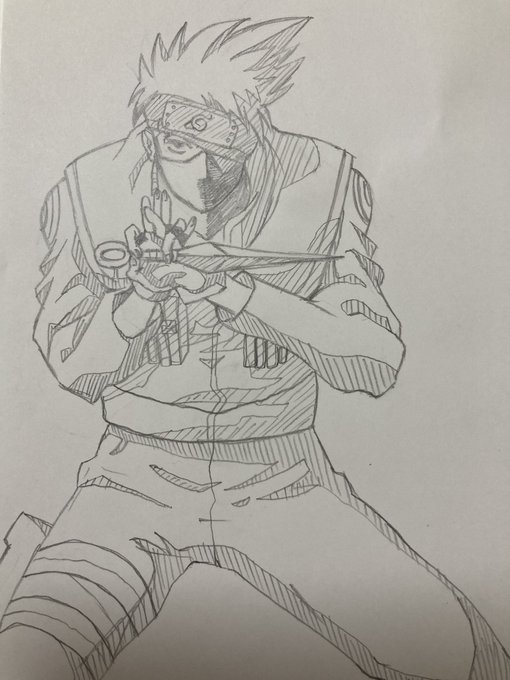 #100人キャラ模写チャレンジ #あむカピチャンネル 1日目「はたけカカシ」さんを模写しました!写してないよ!頑張った‼️ #イラスト #アナログ絵 #イラスト #NARUTOイラスト #アニメイラスト #はたけカカシ #写輪眼 #千鳥 #NARUTO #ナルト #みんなで楽しむTwitter展覧会 #落書き #カカシ先生
