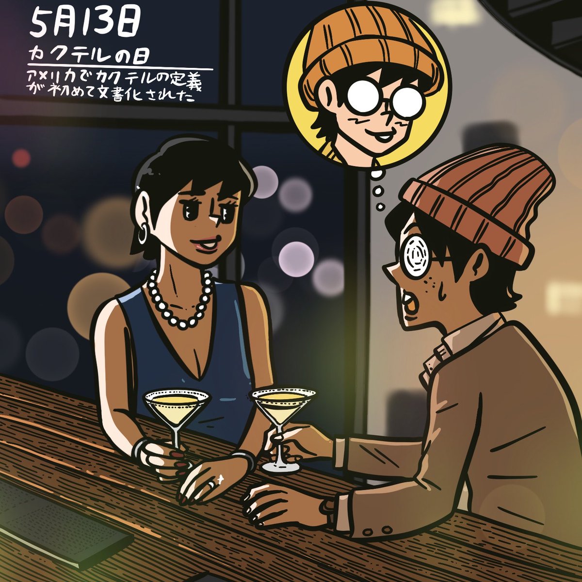 #何の日ビーバー 🦫247日目🦫 1806年、ニューヨークの新聞にカクテルという名称が初登場、その翌週の5月13日読者の問い合わせに対して「カクテルの定義」が初めて文書化された。それを記念しアメリカでは #カクテルの日( #worldcocktailday )として広く知られている #イラスト #絵描きさんと繋がりたい