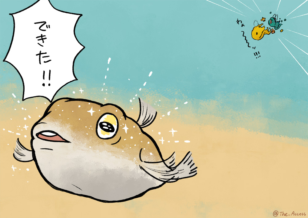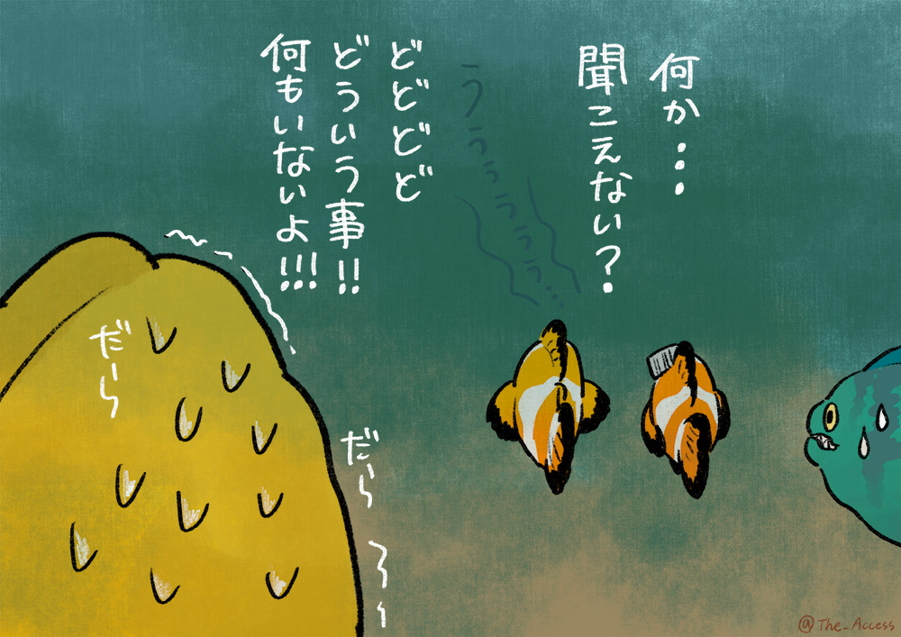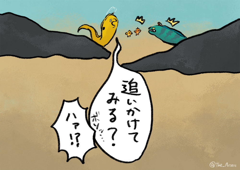 【何も知らないウツボ67】 「デジャヴ」 #何も知らないウツボ #アマミホシゾラフグ #ウツボ #カクレクマノミ #イセエビ #アカシマシラヒゲエビ #イラスト #漫画 #The_Access