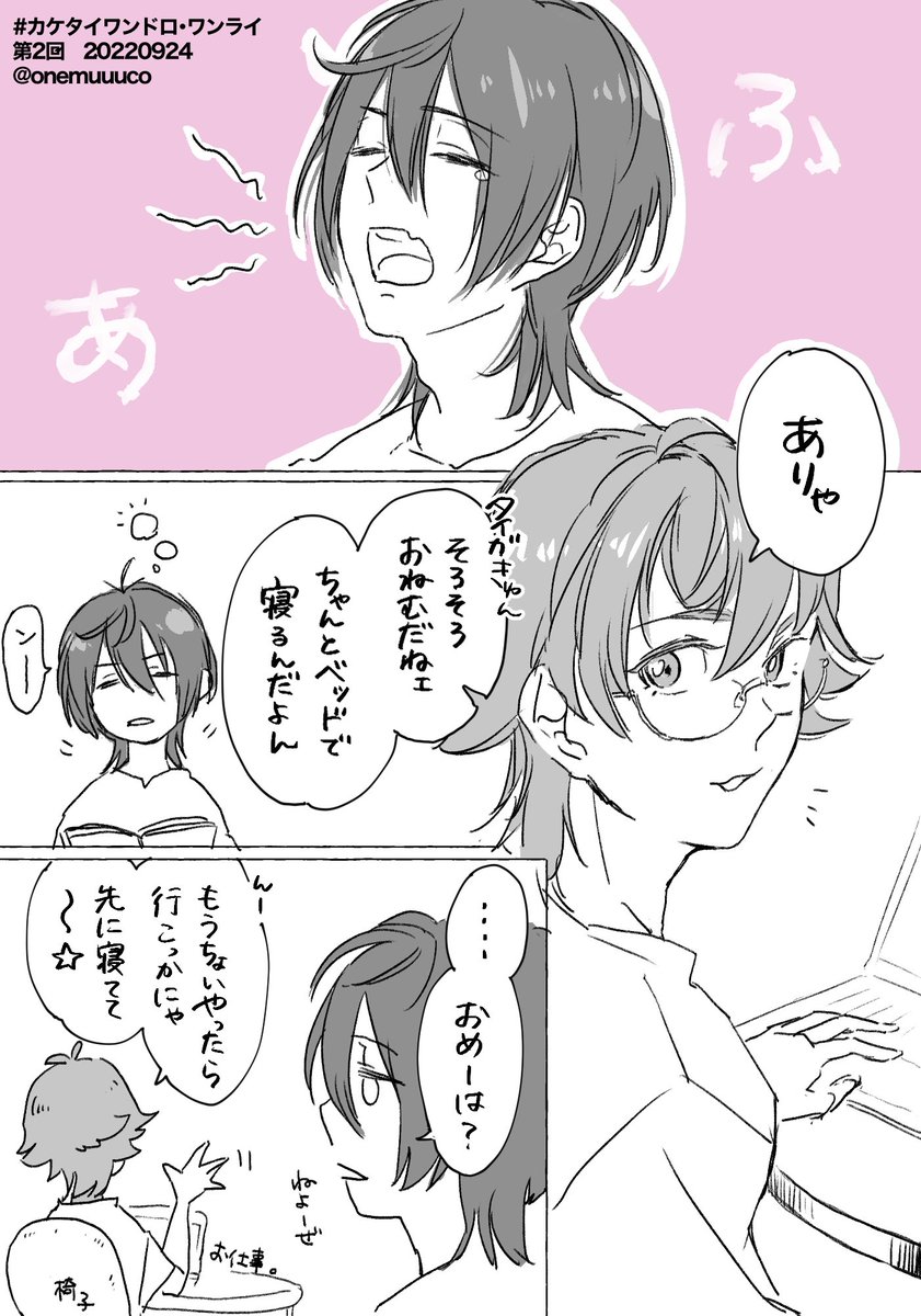 【第2回】#カケタイワンドロ・ワンライ お題:「緊張」「眠そうな君」「知らねーよ」 時間:4h(は超えてる…) 大遅刻なのに荒すぎる画面ですみません…… ヤマもオチもないですが……カケタイのイミだけはある!!!笑 めちゃくちゃ楽しかったです!!!