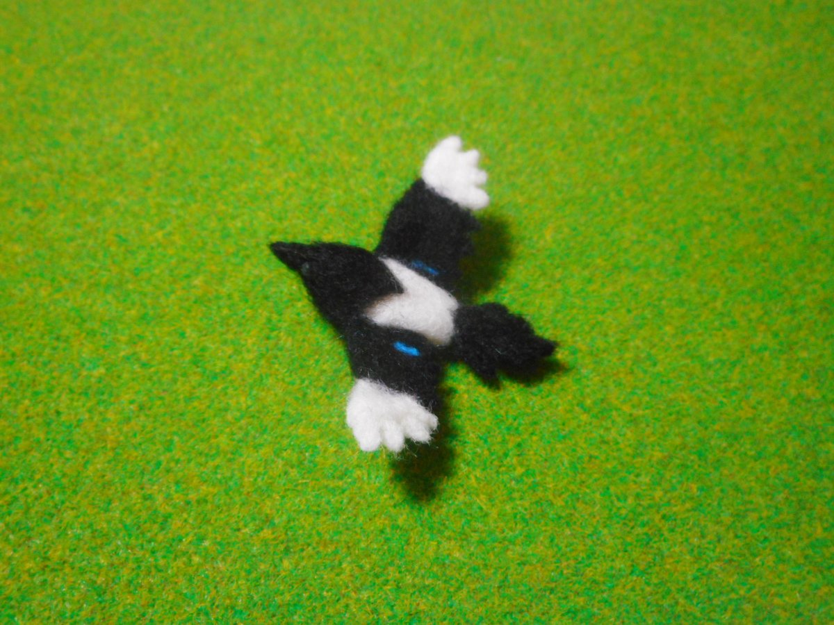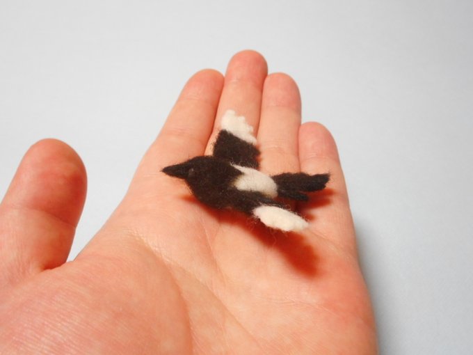 昨年夏に親しい友人からオーダーをもらっていたものの、雷鳥オーダーやマルシェがあり作成が滞っていた #カササギ が完成しました。 ポーズ指定でしたので写真を見ながら。 自立するか大変不安でしたが、根性で自立させました。 ぬいぐるみ寄りの作品です。 #ひつじ草フェルト細工所 #羊毛フェルト