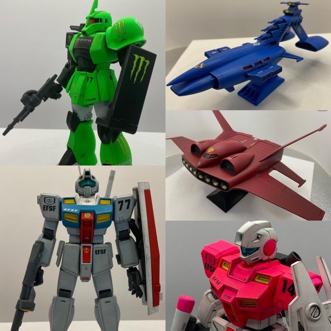 #今月作ったプラモ晒そうぜ #ガンプラ #カスタムペイントshaftD 今月7月はコレが精一杯!暑さに負けて何日か模型活動お休みしましたし😅 でも作った物はどれも個性的で楽しめました。ありがたい事にドダイYS グフとのマグネットドッキングとジム寒スレッガーロウ搭乗機カラーは即完売しました😁