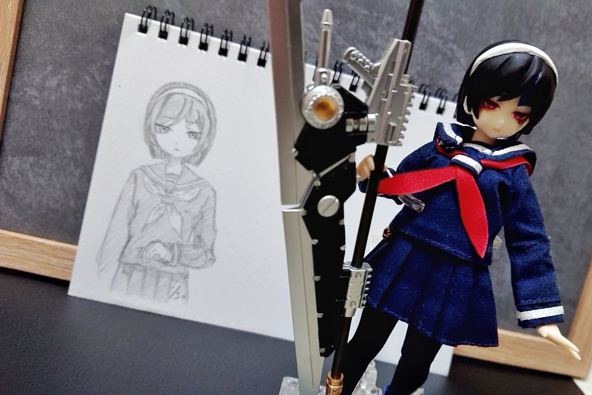 カスタムリリィ7周年おめでとうございます。 己の“癖”を具現化した夢の結晶を常に手元に置く生活、充足度が明らかに違いますね。 メモリアルな機会にかこつけて解禁すると、こいつの名前は槐野 玖琅那(キノ クロナ)。俺の娘です。 #カスタムリリィ7周年 #カスタムリリィ #アサルトリリィドール部