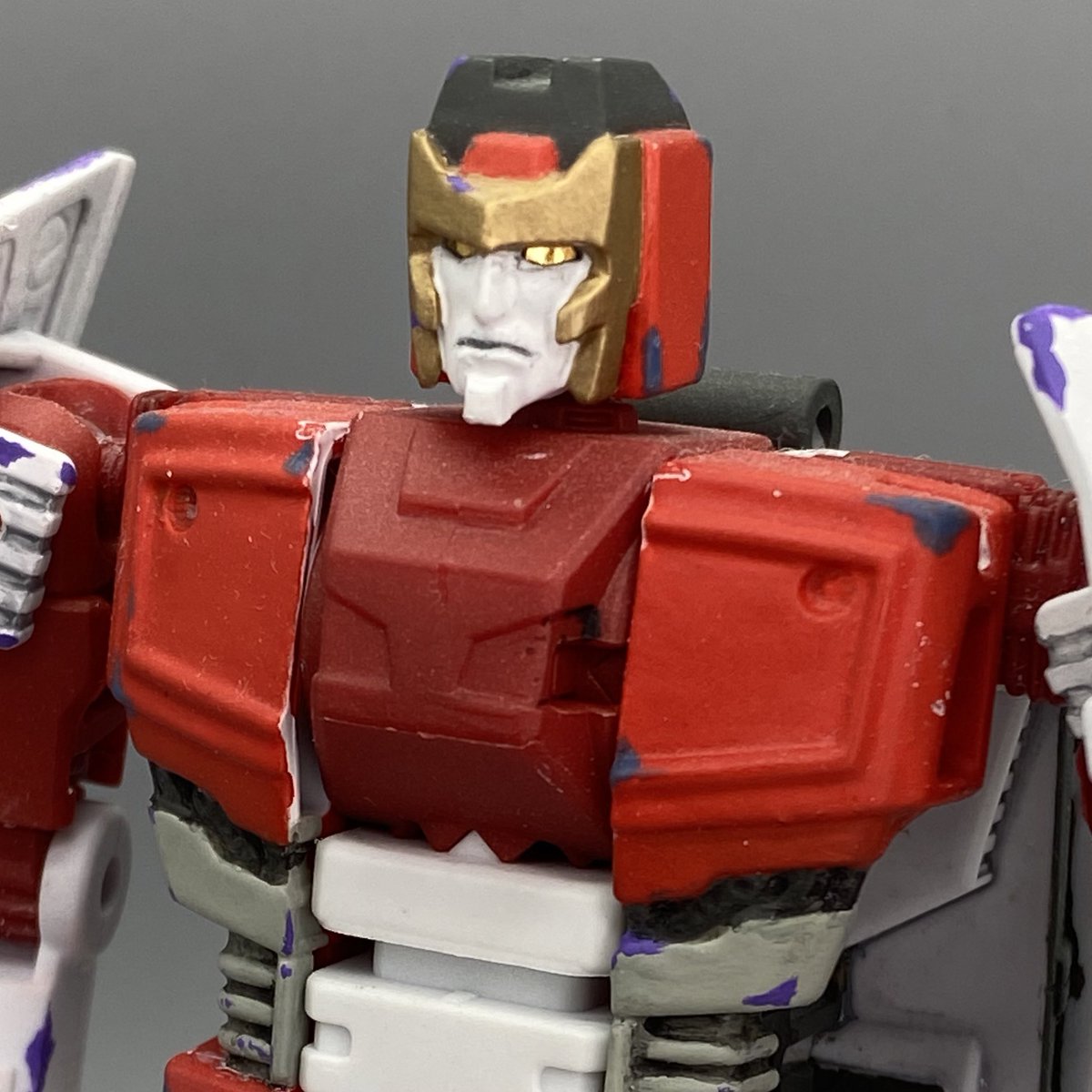 #トランスフォーマー #リペフォ #カスタムTF カスタム用にジャンクで持ってたレジェンズブラックコンボイ頭部が余ってた為なんとなく作ってたザ・フォールンが完成しました。 ボディはTRメガトロンです モデルにしたのはタイタニウムで出てた同名キャラです 部分塗装メインだけど雰囲気は出せたかな…