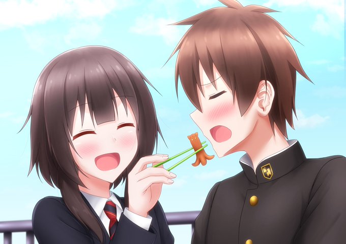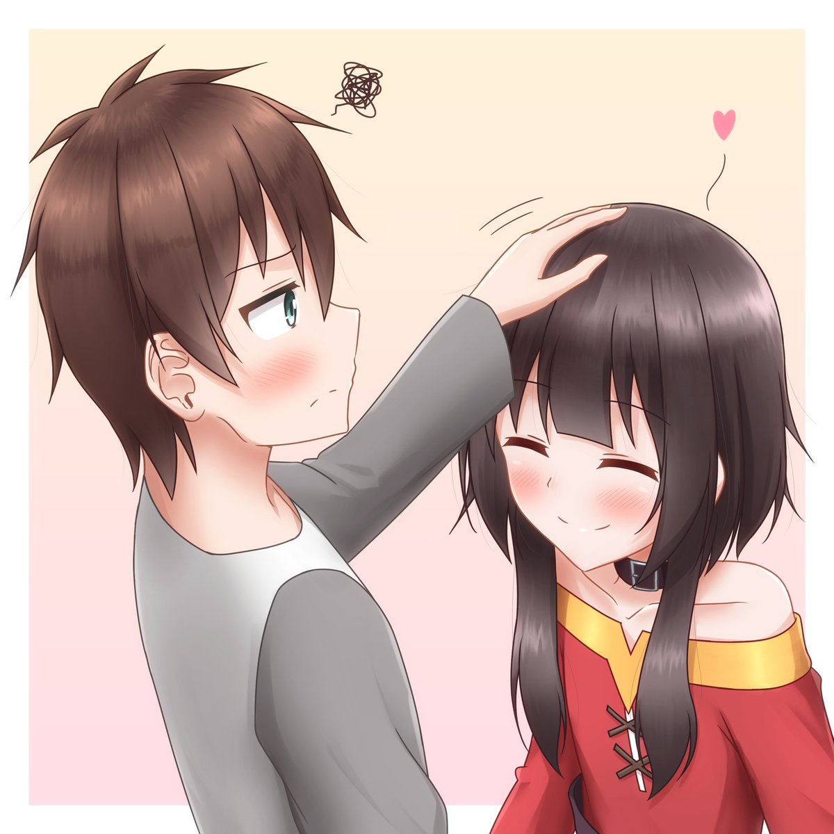 バレンタイン記念!カズめぐ! 背景とかあんま得意じゃないですがちょっと描きました めぐみんはいつ渡そうかタイミングを計っている事でしょう! #このすば #この素晴らしい世界に祝福を #めぐみん #カズマ #カズめぐ #バレンタインイラスト