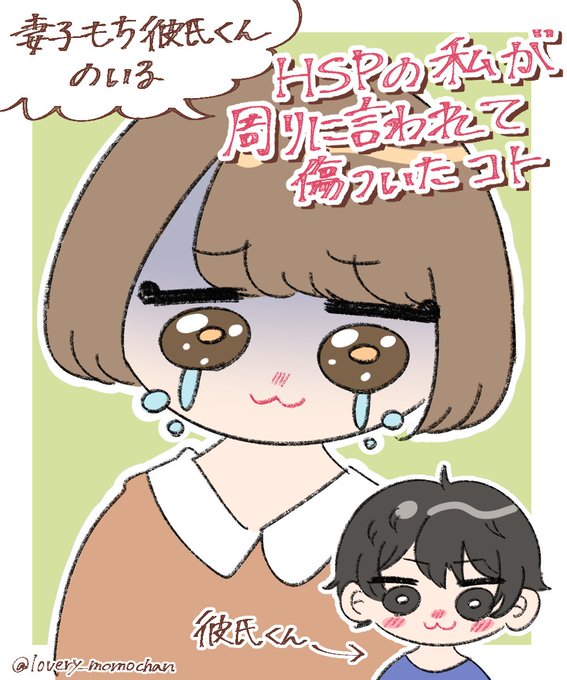 「妻子持ち彼氏くんのいるHSPの私が周りに言われて傷ついた事🥲」 これを機にHSPという症状が広まってみんながみんなに優しい世界になりますように🥲 #カップルエッセイ #漫画がよめるハッシュタグ