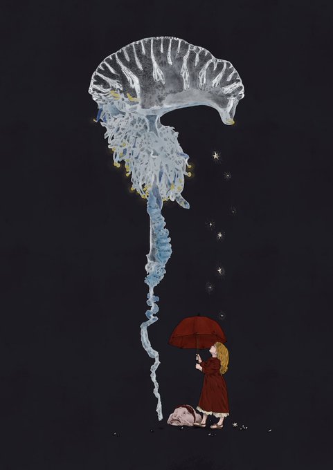 Don’t touch me ……🫧 #illustration #artworks #watercolor #カツオノエボシ #クラゲ #擬人化 #ロリィタ #アナログ絵 #水彩色鉛筆 #透明水彩 #絵描きさんと繋がりたい #ろろさきすかるわーくす