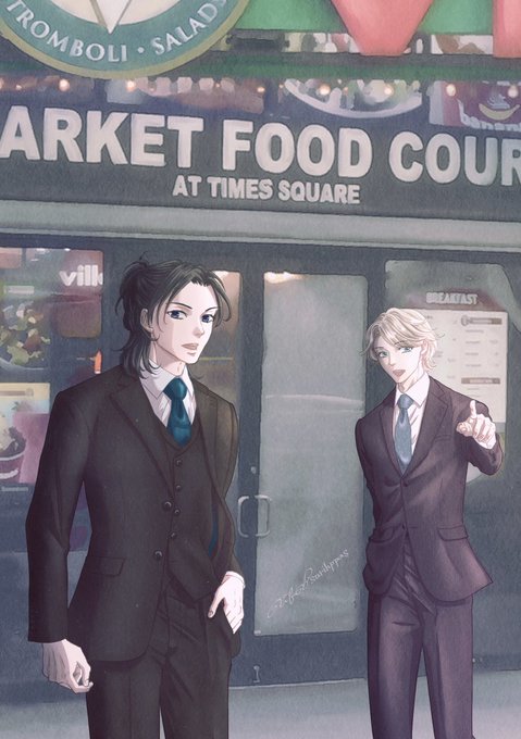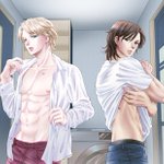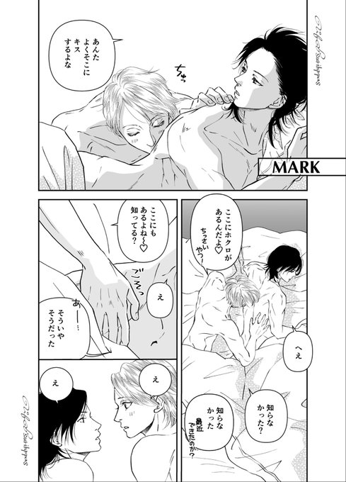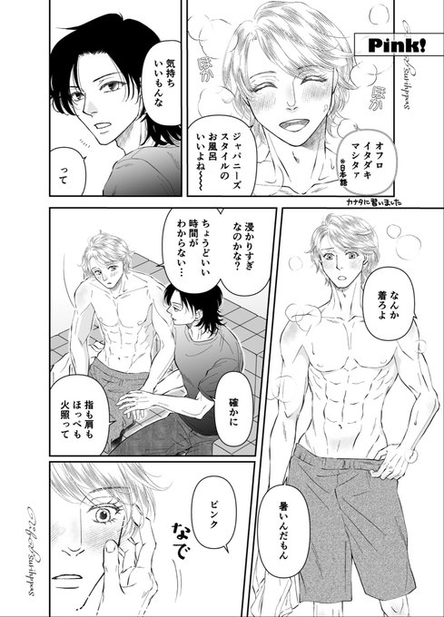 #創作BL #繋がらなくていいから俺の絵を見てくれ #カナタとサーシャ 診断メーカーで出たお題から。洗面台の鏡に向かってキスマークを確認するふたり。確認後に笑う🪆🍣絵も描く予定ですが、そちらはイラスト本で公開します😌 twitter.com/surihppas/stat…