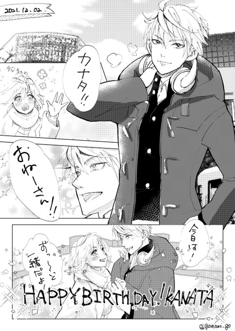 よかった…なんとか間に合いました😊 カナタお誕生日おめでとうございます🎁🎂🎉 「え、おねーさん 俺の誕生日祝ってくれんの…? どうしよう、すっげーうれしい」 っていうお顔描きました😊 #カナタ様聖誕祭2021