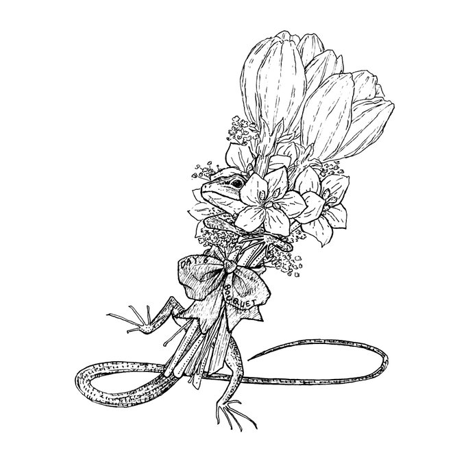 【#カナヘビ仮装大賞】 Day.23 #BOOGER(鼻くそ) カナヘビは鼻くそ出ないので、鼻近くの脱皮殻が付いている感じで 花はダジャレです #inktober #inktober2022 #Halloween #ハロウィン #カナヘビ @inktober