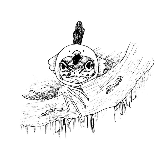 【#カナヘビ仮装大賞】 Day.17 #SALTY (しょっぱい、イライラ) ミルワームの取り合いです #inktober #inktober2022 #Halloween #ハロウィン #カナヘビ @inktober