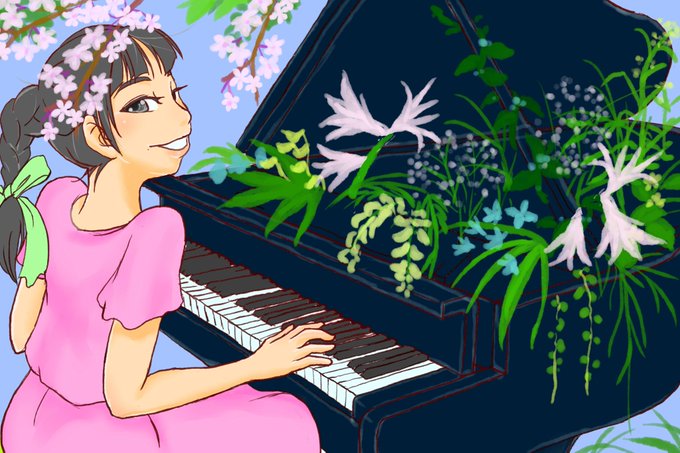 艶やかな大輪の花束も 路傍にひっそり咲く一輪の花も いのちを輝かせるその一瞬を 巡りめぐって繰り返りかえす #シンガーソングライター #坂本櫻 さん @kukiwakamepanda の 花にまつわる #カバー曲 #ピアノ #弾き語り メドレー #ファンアート #イラスト #櫻を知ると世界が幸せに twitter.com/kukiwakamepa…