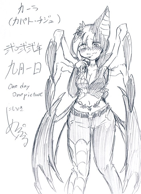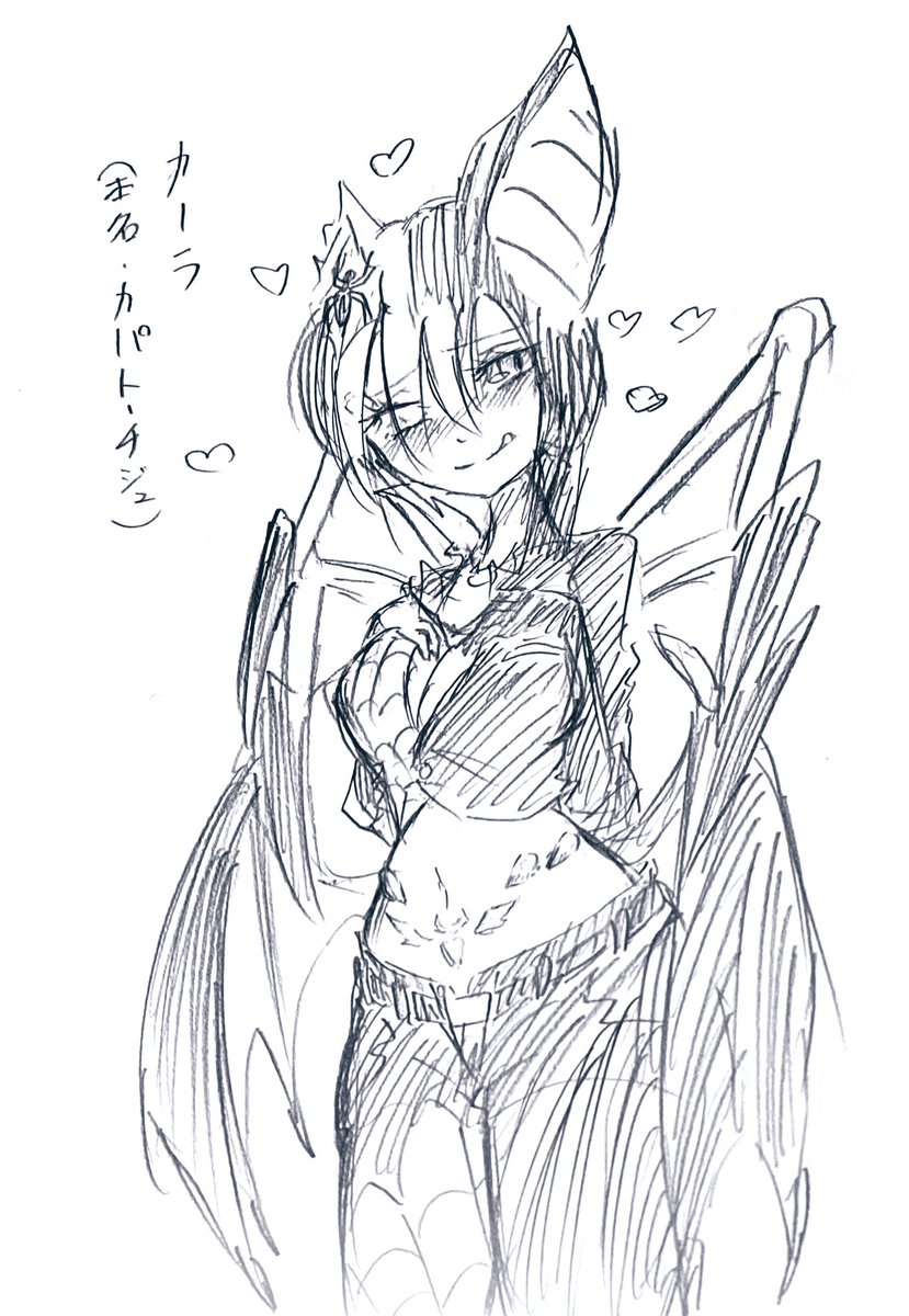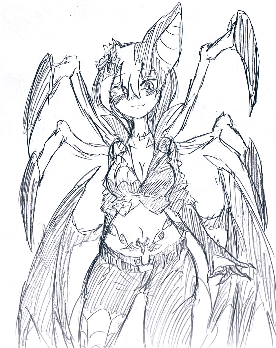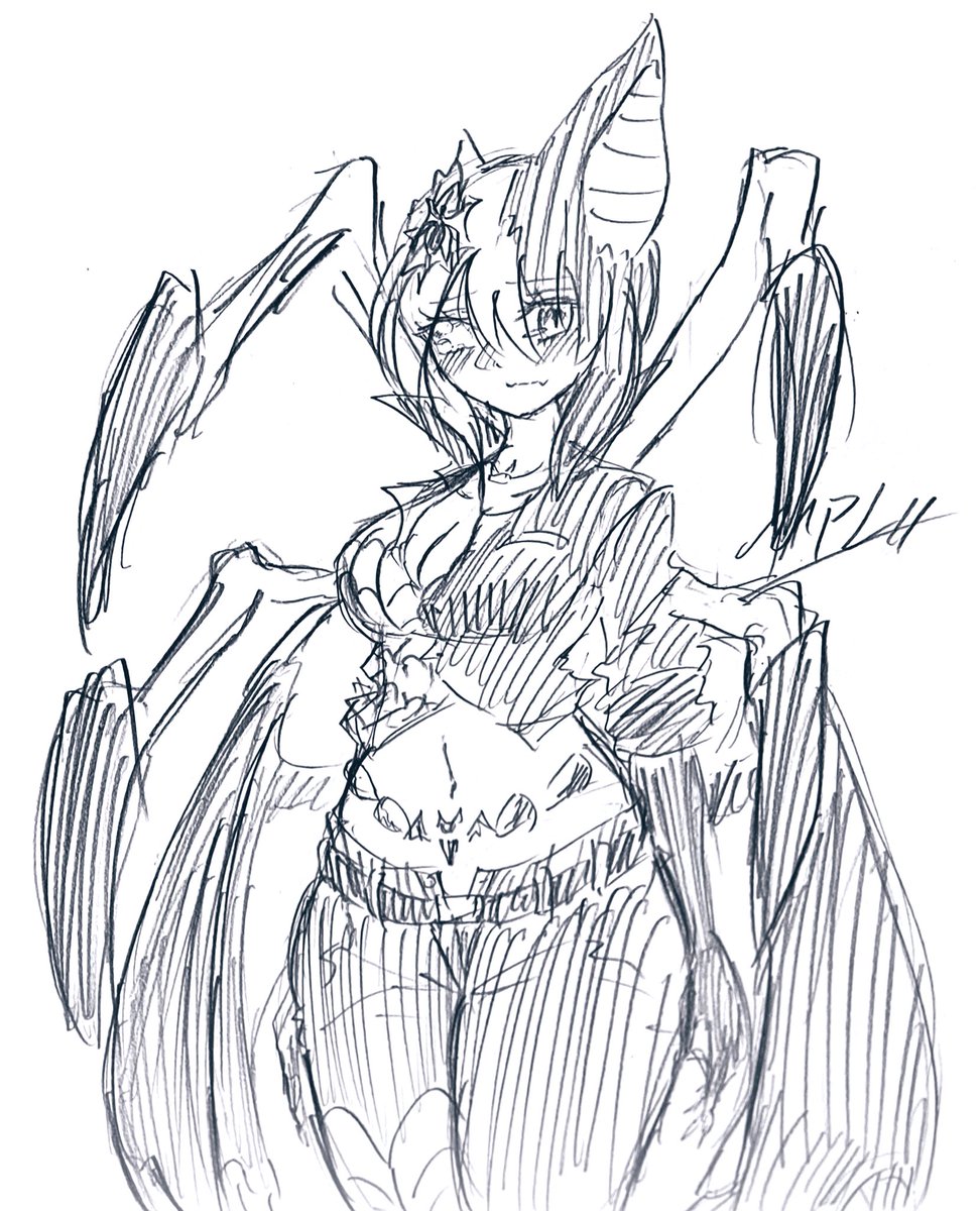 #西時の1日1絵【687日目】 今日はやっと名前が付いたクモコウモリ改めカーラ(本名カパト・チジュ)ちゃん描いた 俺のオリでのえちえち担当にします タグも新たに開設します #絵描きさんと繋がりたい #カパト・チジュ