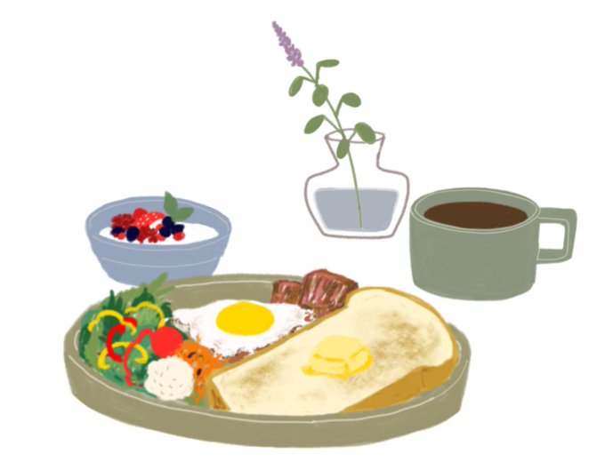 カフェごはん なんとなく描き始めたらめっちゃ時間かかった💦😅 #イラスト #イラストレーション #イラストレーター #イラスト好きな人と繋がりたい #絵 #絵描き #絵描きさんと繋がりたい #お絵かき #カフェごはん #イラストAC