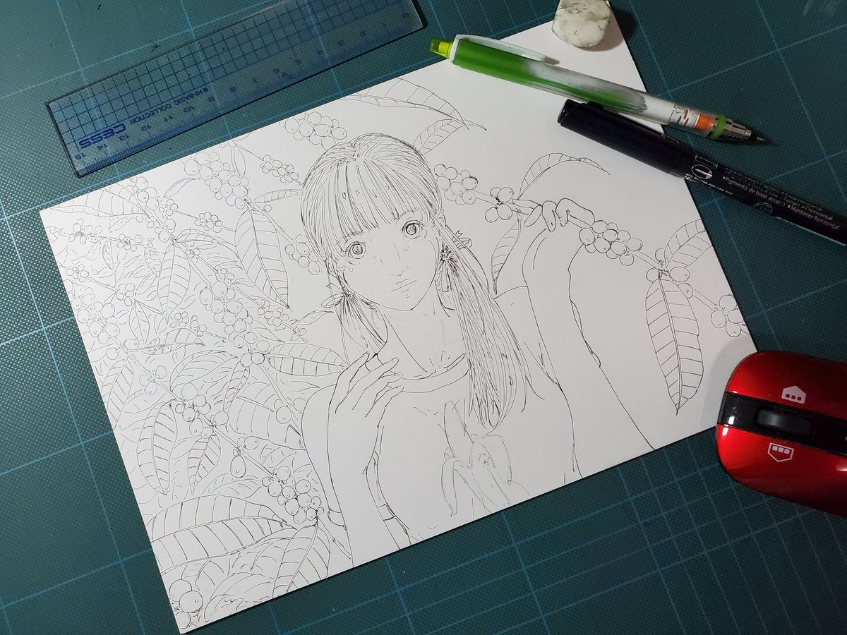 昨日のミリペンまでやったのを フルカラーにしました✨ #オリキャラ #豆井戸水宇 #森雪奈々 #バリスタは死んだ #パーカー女子 #カフェ店員 #ハーフアップ #みんなで楽しむTwitter展覧会 #絵描きの輪 #イラスト好きな人と繋がりたい #アトリエの系譜 #絵師さんと繋がりたい