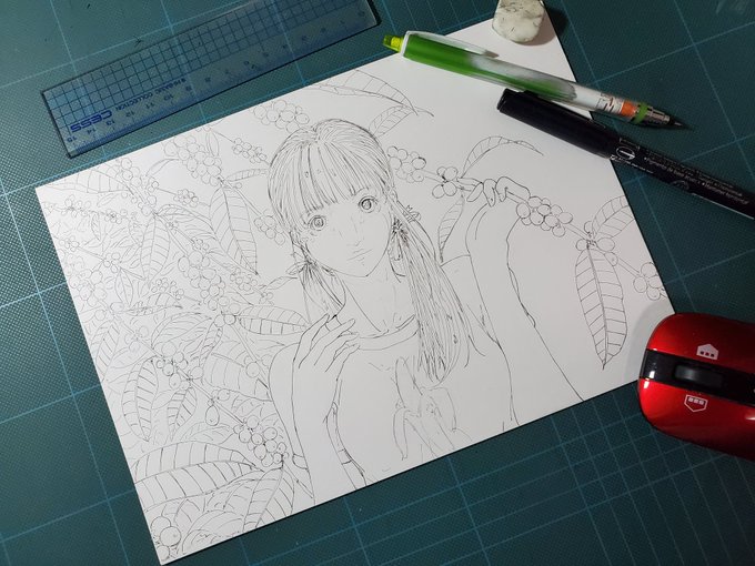 この前と ちょっと変わった🎵 ついでに #振り向き 描いた🎵 #bcrichbich #ポルタフィルター #眼鏡女子 #エプロン #カフェ店員 #ギター #琥緋猪紙奈 #baristaisdead #yamazakiyacoffee #イラスト好きな人と繋がりたい #イラスト #絵描きの輪 #アトリエの系譜 #みんなで楽しむTwitter展覧会