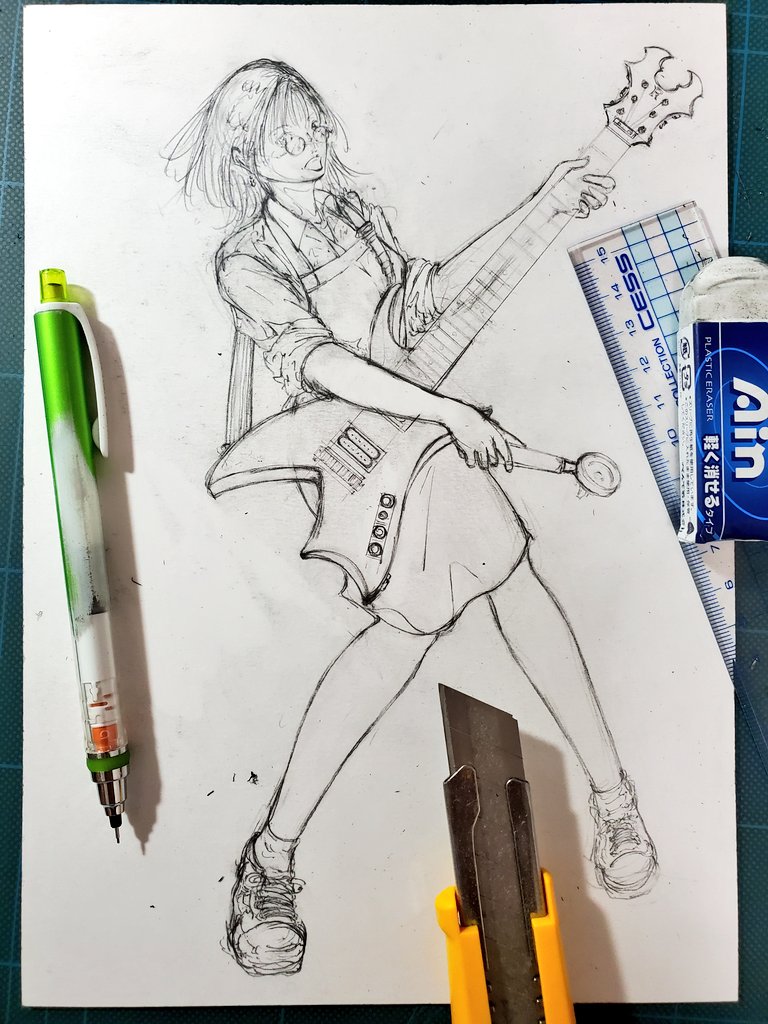 よく描いてる #オリキャラ #イラスト #ギター 持たせたのも何回か描きかけては止めてたけど💦 今回は終いまでやる気有り🎵 #眼鏡女子 #カフェ店員 #ギター女子 #bcrichbich #オリキャライラスト #イラスト好きな人と繋がりたい #アトリエの系譜 #みんなで楽しむTwitter展覧会