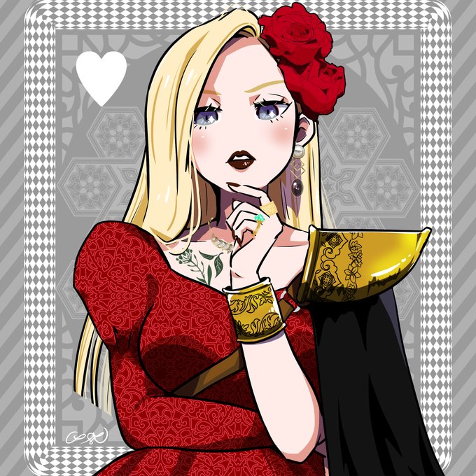 トランプのハートをモチーフに描きました♥ いつも可愛いタイプの女の子ばっかり描いてるから強めなお姉さまは新鮮かも #カプネロのイラスト #イラスト #イラスト好きさんと繋がりたい #秋の創作クラスタフォロー祭り #オリジナルイラスト