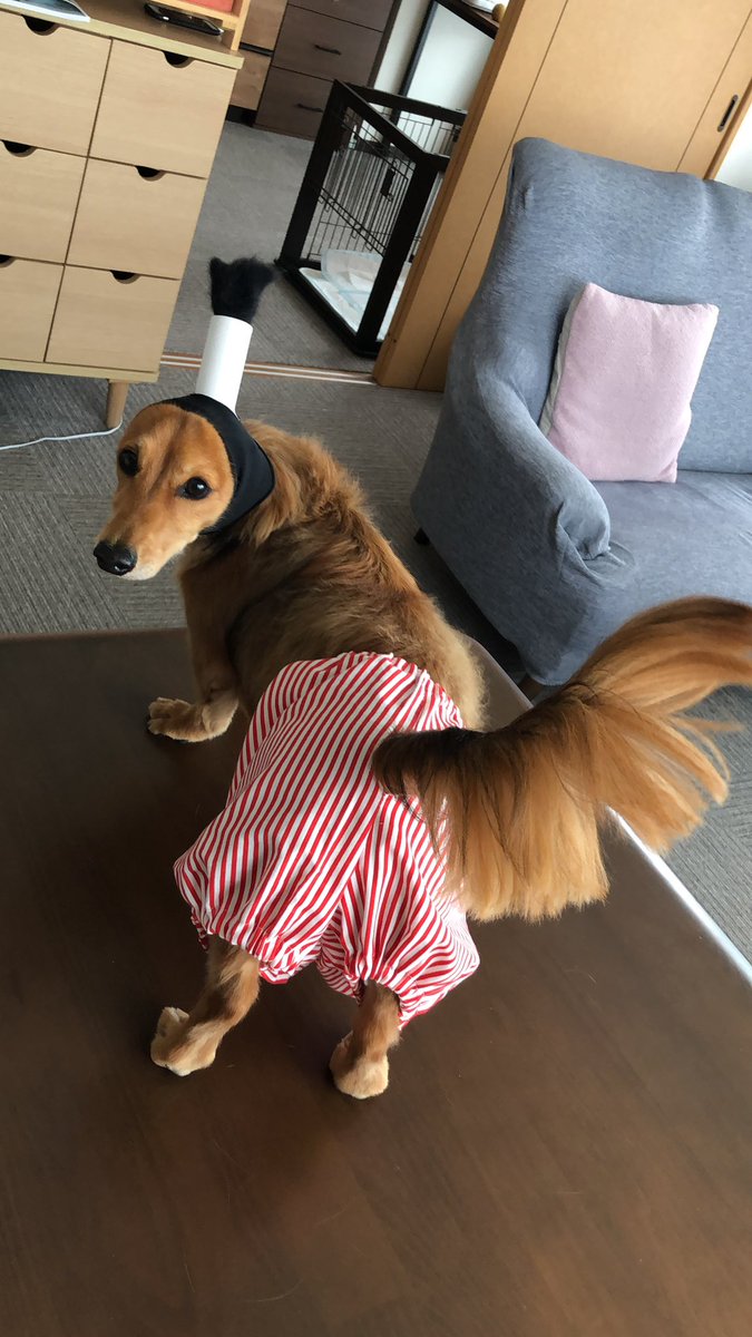 感動の再会もそこそこに…裸の殿様をやらされるぼく… 感動の涙を返せ… #ミニチュアダックスフンド #イラスト #コスプレ #ウルババが夜なべした #カボチャパンツ #そういう時だけ行動力爆発